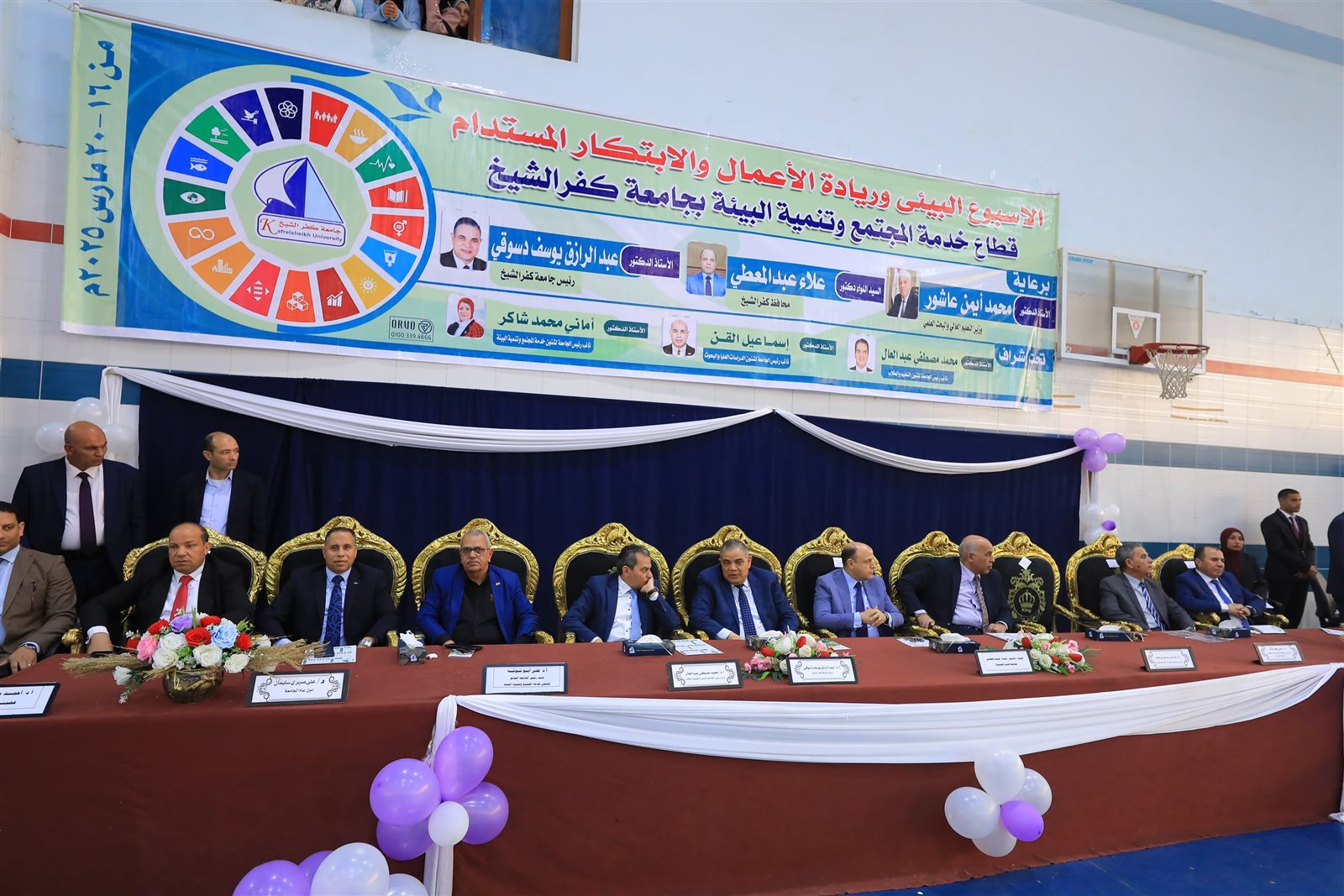 حيث افتتح الدكتور عبدالرازق دسوقي رئيس جامعة كفرالشيخ، برفقة اللواء دكتور علاء عبد المعطي محافظ كفرالشيخ، فعاليات الأسبوع البيئي وريادة الأعمال والابتكار المستدام بالجامعة، بالصالة المغطاة بكلية التربية الرياضية، والذي تستمر فعالياته خلال الفترة من 16-20 من شهر مارس الجاري على مستوى كليات الجامعة.