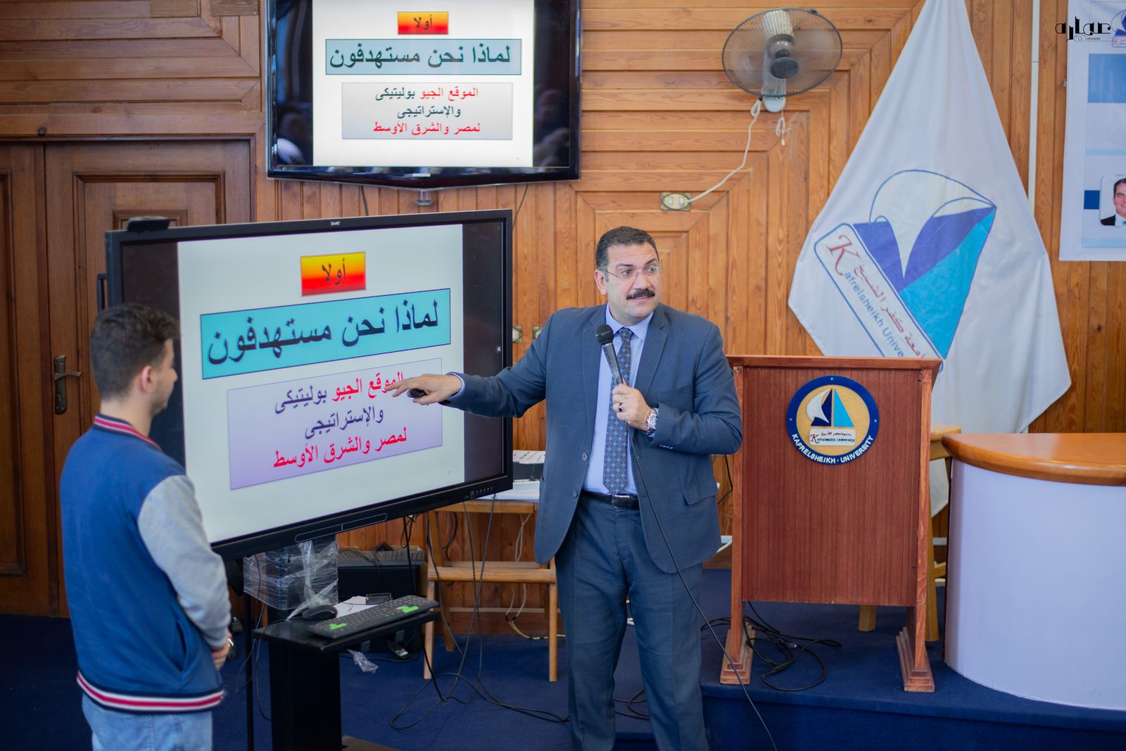 وحاضر الندوة الدكتور رشدي العدوي منسق عام الأنشطة الطلابية جامعة كفرالشيخ، ودارت الندوة حول مفهومي الولاء والانتماء الحقيقين وكيف يحمي الشباب انفسهم من المفاهيم المغلوطة والأفكار المتطرفة والتي قد تؤدي إلى فقد الهوية المصرية دون إدراك او وعي، مؤكدًا ضرورة الوعي الصحيح حتى لا نقف على حافة الهاوية مع أنفسنا وبلدنا الحبيب ومجتمعنا.