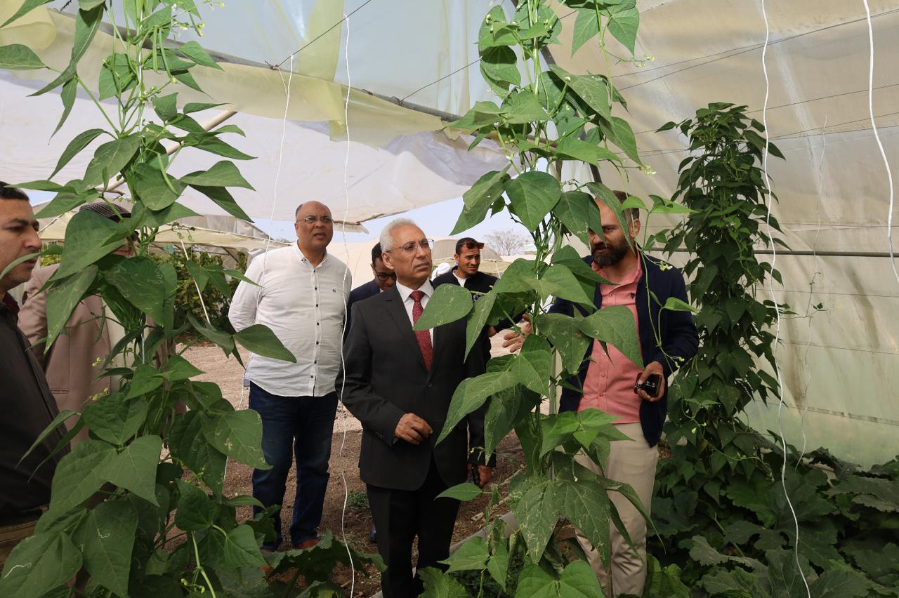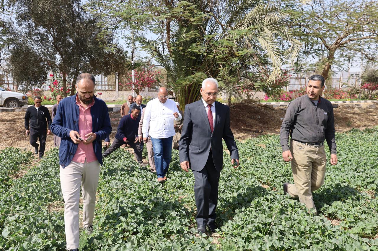 رئيس جامعة المنيا يتفقد المنتجات والمحاصيل الزراعية بمشروع الصوب الزراعية