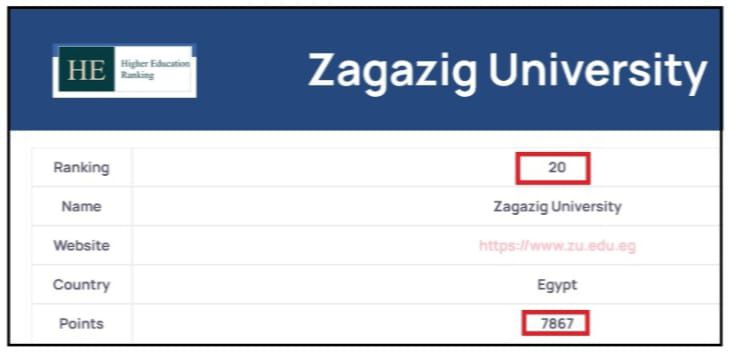 ترتيب جامعة الزقازيق في تصنيف HE 2025