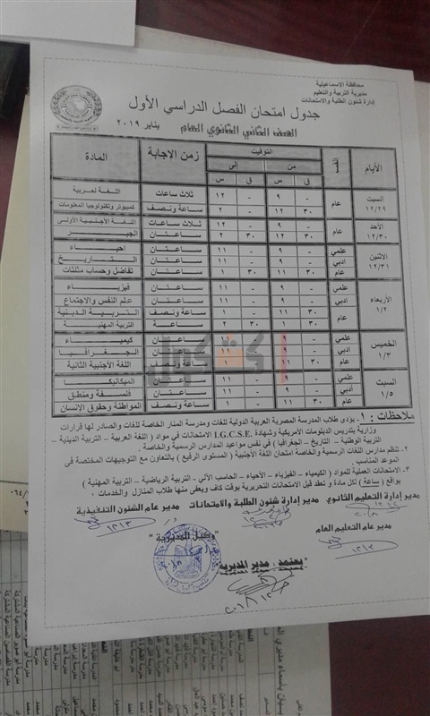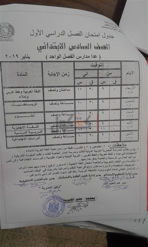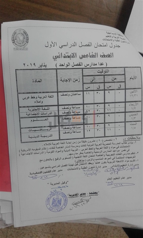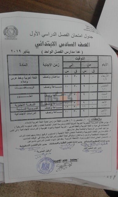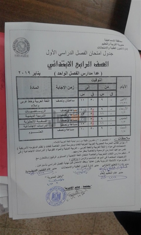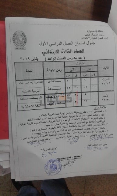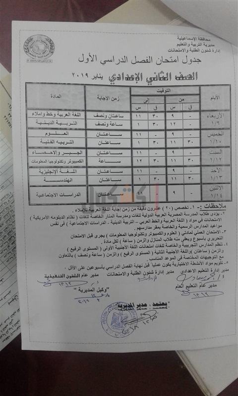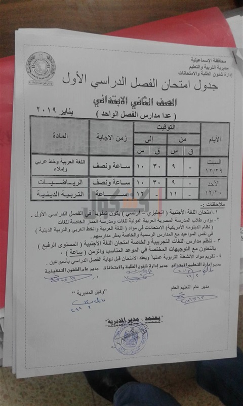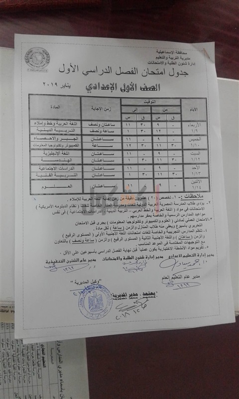 ننفرد بنشر جداول امتحانات نصف العام الدراسي الأول بالإسماعيلية