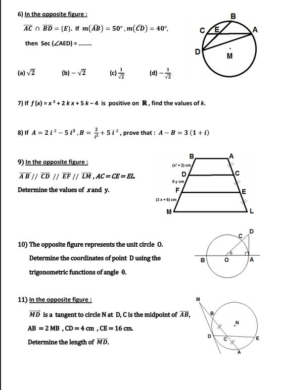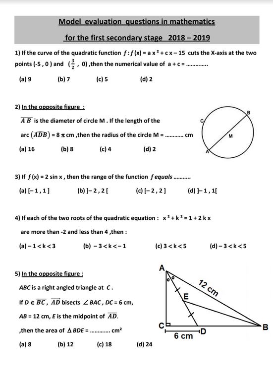 نشرت الصفحة الرسمية لمستشار مادة الرياضيات عبر موقع التواصل الإجتماعي فيس بوك، نماذج للأسئلة الإسترشادية للصف الأول الثانوى.