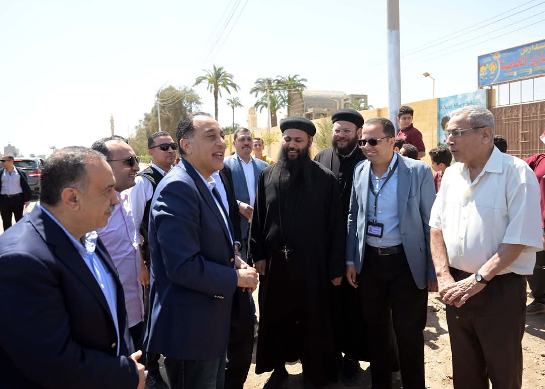وقف يسلم عليهم.. «مدبولي» يتوقف أمام مدرسة "سانت ماري" بمنفلوط