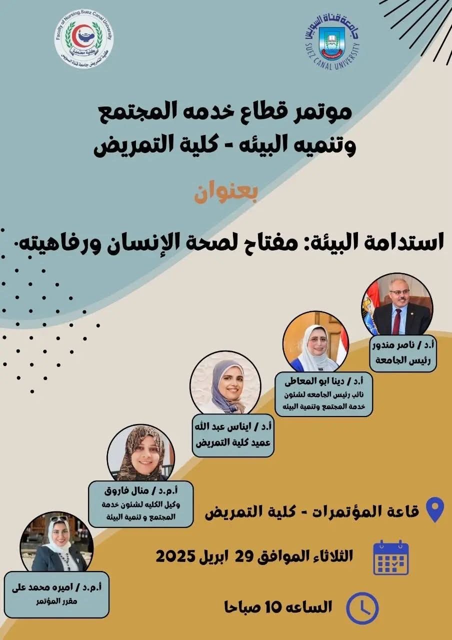 "تمريض قناة السويس" تنظم مؤتمرها البيئي تحت عنوان "استدامة البيئة: مفتاح لصحة الإنسان ورفاهيته"