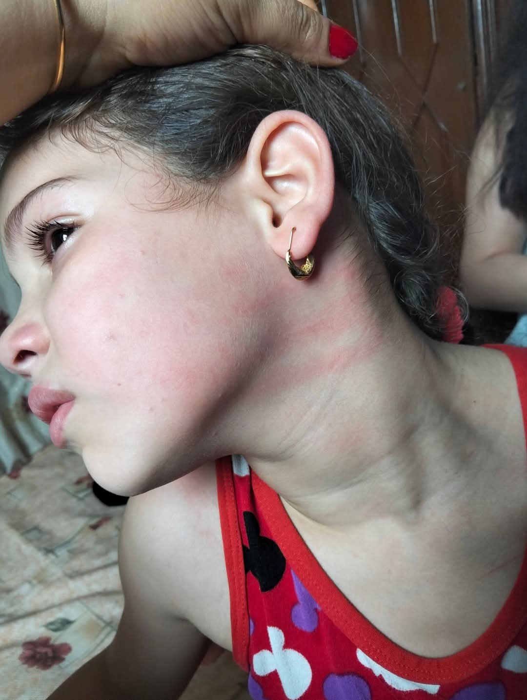 ونشرت الأم صور لإصابة نجلتها على وجهها ورقبتها وظهرها نتيجة اعتداء المعلمة عليها، مؤكدة أنها حررت محضرا بقسم الشرطة بالواقعة وجرى ضبط المتهمة والتحفظ عليها.