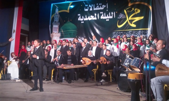 وشهدت الاحتفالية تقديم فريق كورال المديرية تحت قيادة نيفين علام موجه عام التربية الموسيقية بالمديرية واشراف ايناس حسني الموجه الأول بالمديرية بالتنسيق مع توجيه عام المسرح وادارة العلاقات العامة بالمديرية عددا من الفقرات الغنائية الدينية والتواشيح الدينية.