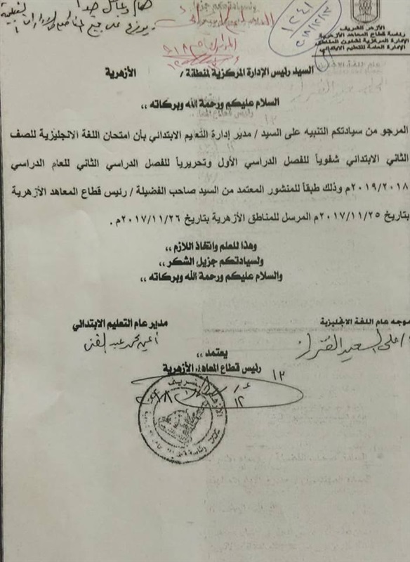 أعلنت إدارة قطاع المعاهد الأزهرية، عن أن امتحان اللغة الانجليزية للصف الثانى الإبتدائي فى الفصل الدراسى الأول هذا العام سيكون شفويًا، على أن يكون الفصل الثانى تحريريًا وشفويًا، لقياس مستوى الطلاب فى النطق والكتابة والوقوف على مستواهم.