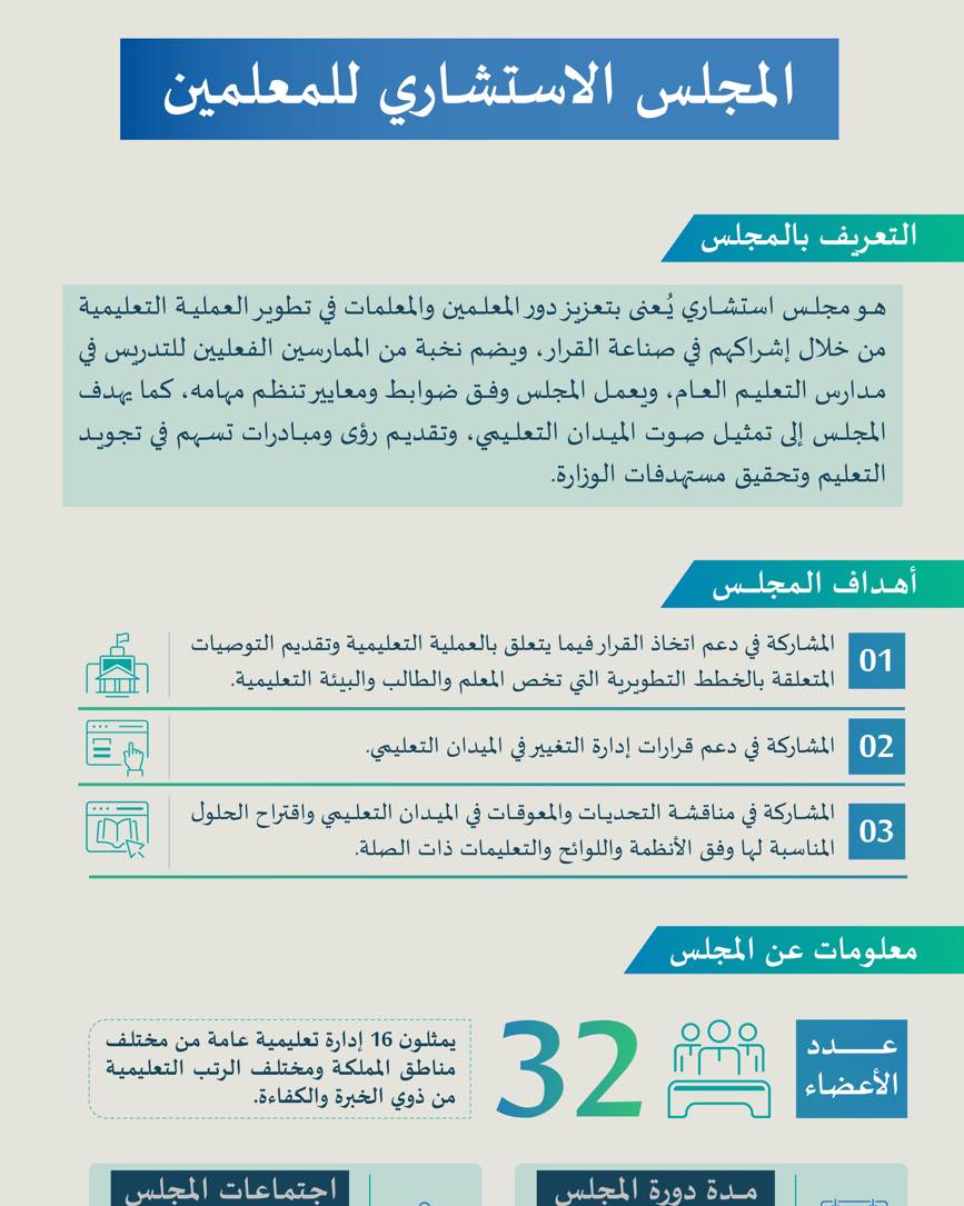32 معلما في عضوية المجلس الاستشاري للمعلمين بالسعودية بعد اعتماد تشكيله