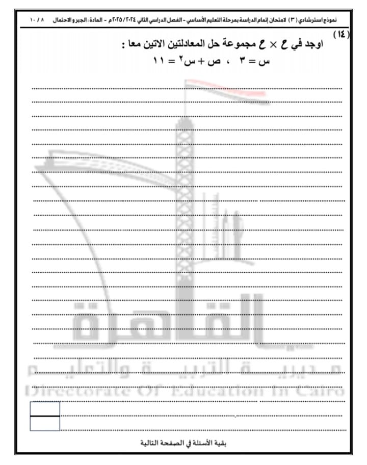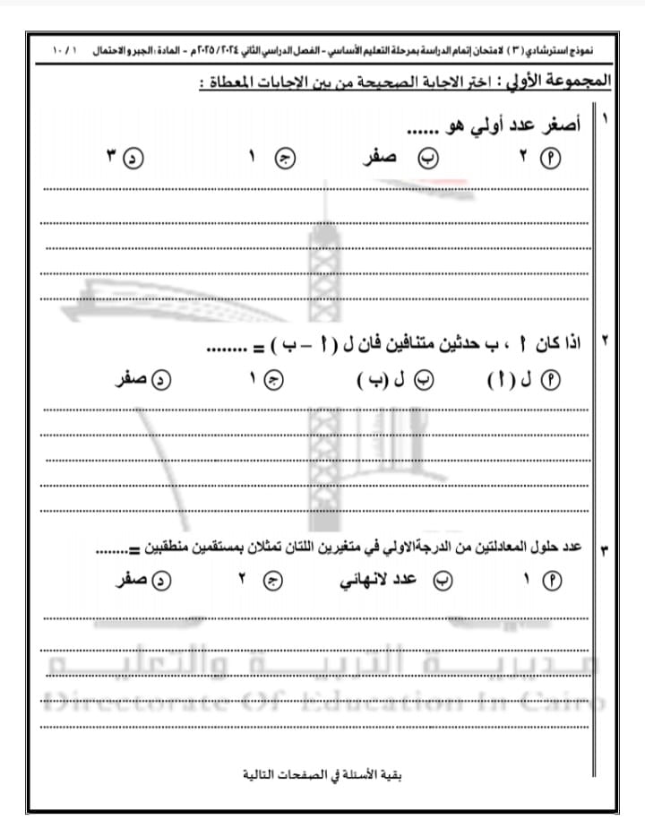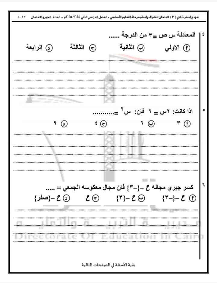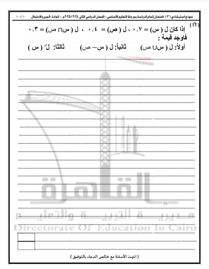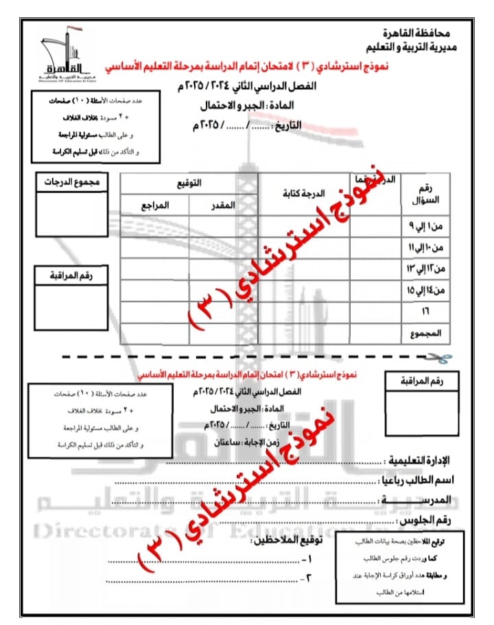 تواصل مديرية التربية والتعليم والتعليم الفني بمحافظة القاهرة نشر النموذج الاسترشادى لامتحان البوكليت فى مادة الجبر والاحتمال.