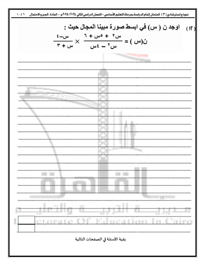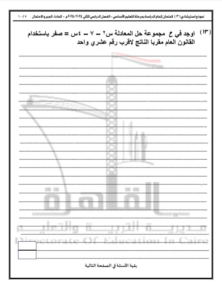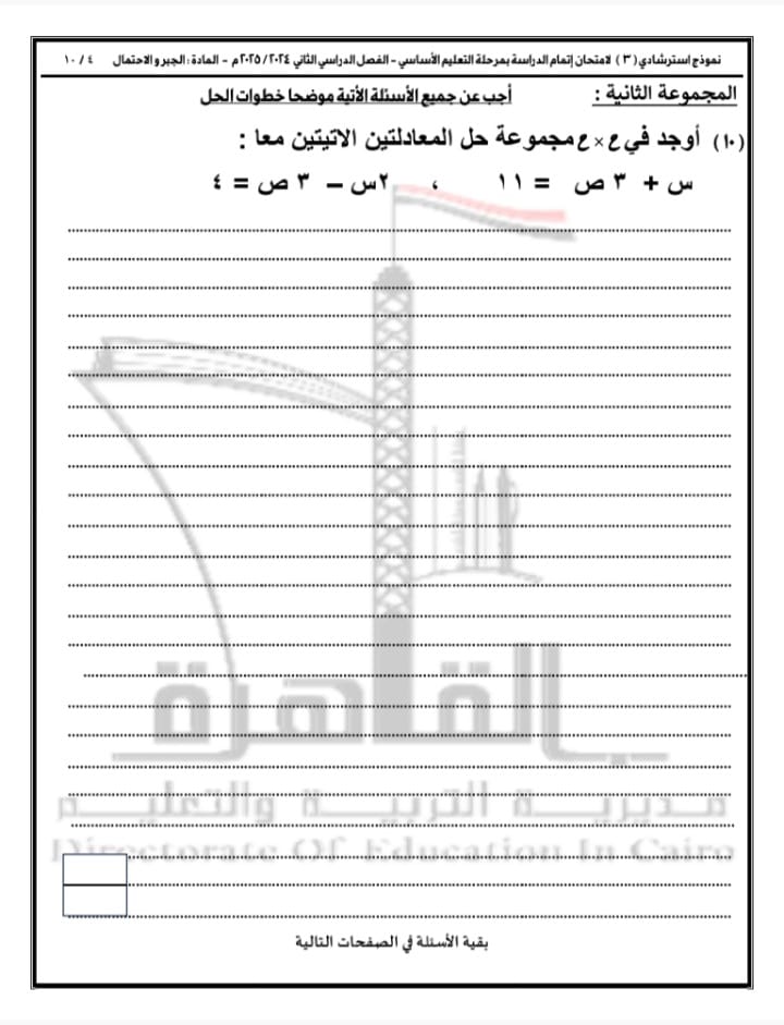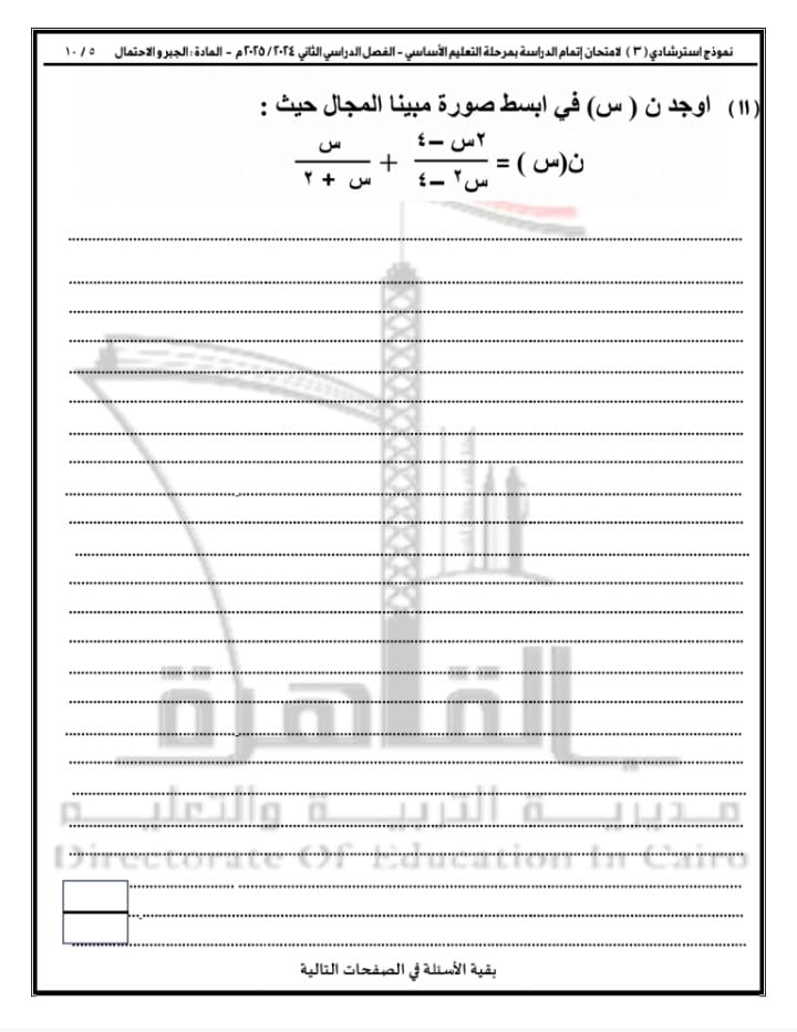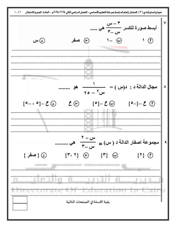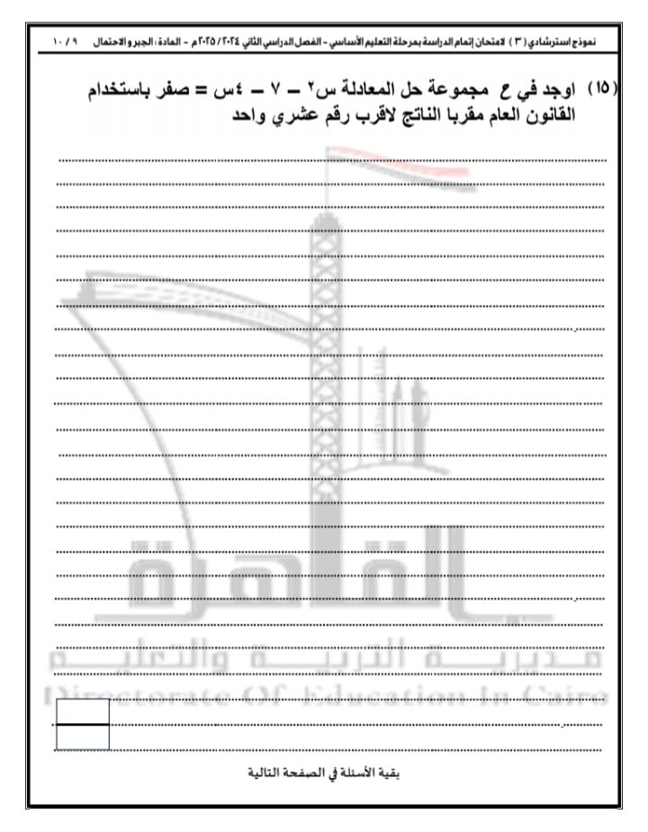 النموذج الاسترشادى لامتحان البوكليت للشهادة الإعدادية بالجبر