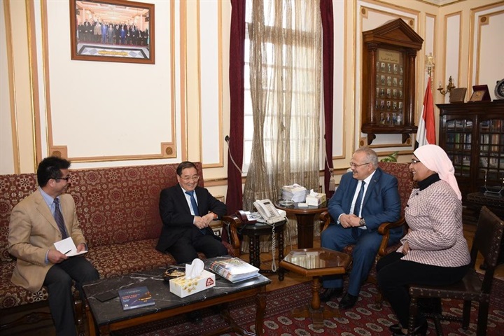 رئيس جامعة القاهرة مع السفير الصيني عدداً من الأفكار المتعلقة بسبل تطوير وتوسيع آفاق التعاون بين جامعة القاهرة والجامعات