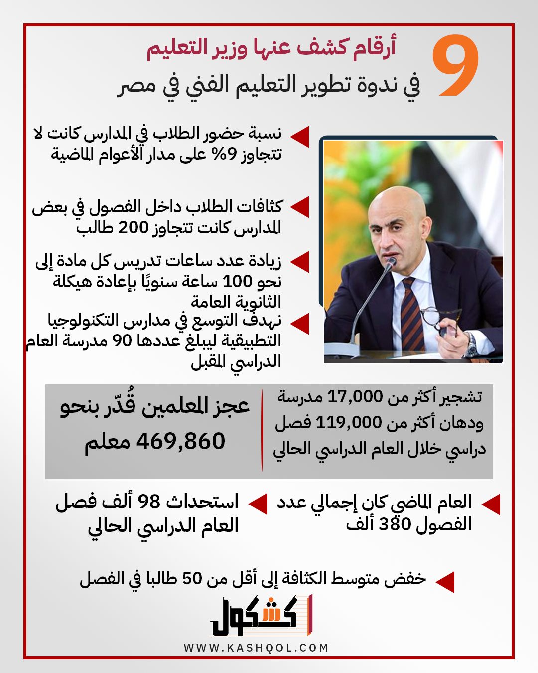 إنفوجراف| 9 أرقام كشف عنها وزير التعليم خلال ندوة تطوير التعليم الفني في مصر