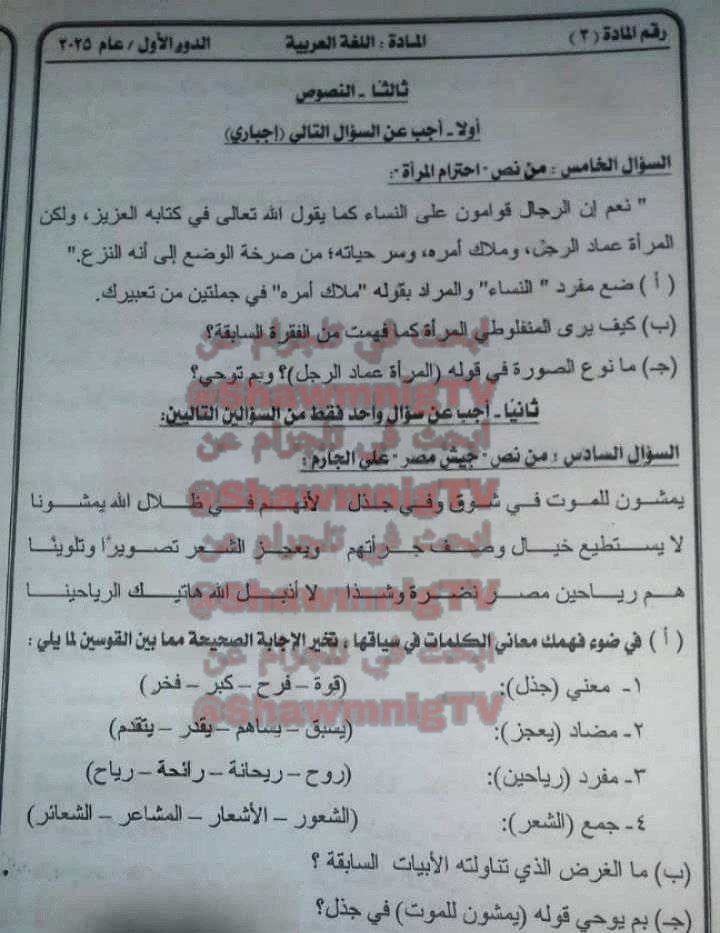 برعاية «شاومينج».. تداول أسئلة امتحان اللغة العربية للدبلومات الفنية 2025