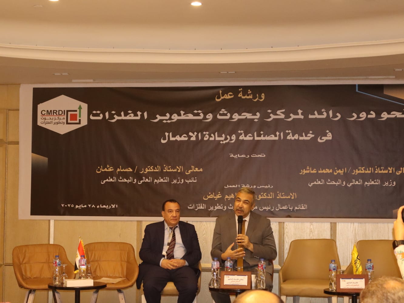 نظم مركز بحوث وتطوير الفلزات ورشة عمل تحت عنوان "نحو دور رائد لمركز بحوث وتطوير الفلزات في دعم الصناعة وريادة الأعمال"، وذلك في إطار توجيهات الدكتور أيمن عاشور وزير التعليم العالي والبحث العلمي بأهمية تعظيم دور المراكز والمعاهد البحثية في دعم الصناعة وريادة الأعمال، وبحضور الدكتور حسام عثمان نائب الوزير لشؤون الابتكار والبحث العلمي.