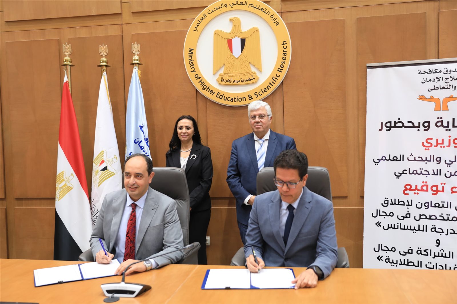 شهد الدكتور أيمن عاشور وزير التعليم العالي والبحث العلمي، والدكتورة مايا مرسي وزيرة التضامن الاجتماعي ورئيس مجلس إدارة صندوق مكافحة وعلاج الإدمان والتعاطي التابع لرئاسة مجلس الوزراء، توقيع بروتوكول تعاون بين كلية الآداب بجامعة بنها وصندوق مكافحة وعلاج الإدمان والتعاطي والصندوق، وآخر بين معهد إعداد القادة، والصندوق، وذلك بمبنى وزارة التعليم العالي بالعاصمة الإدارية.