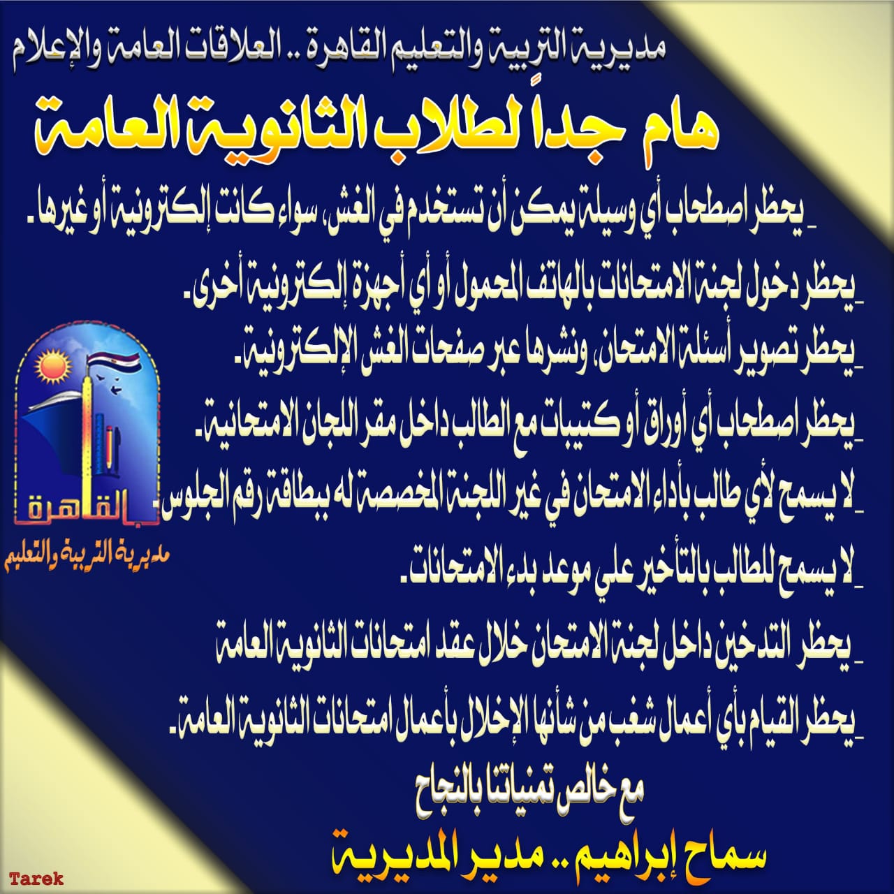 رسالة ونصائح مديرية التربية والتعليم بالقاهرة لطلاب الثانوية العامة 2025