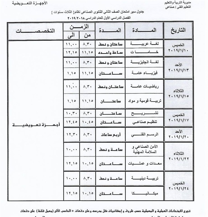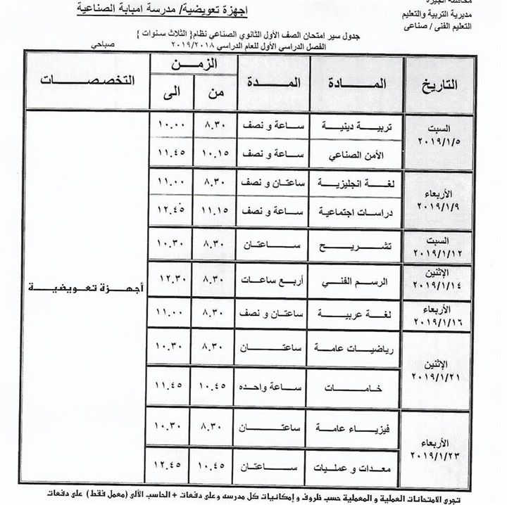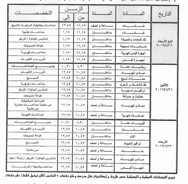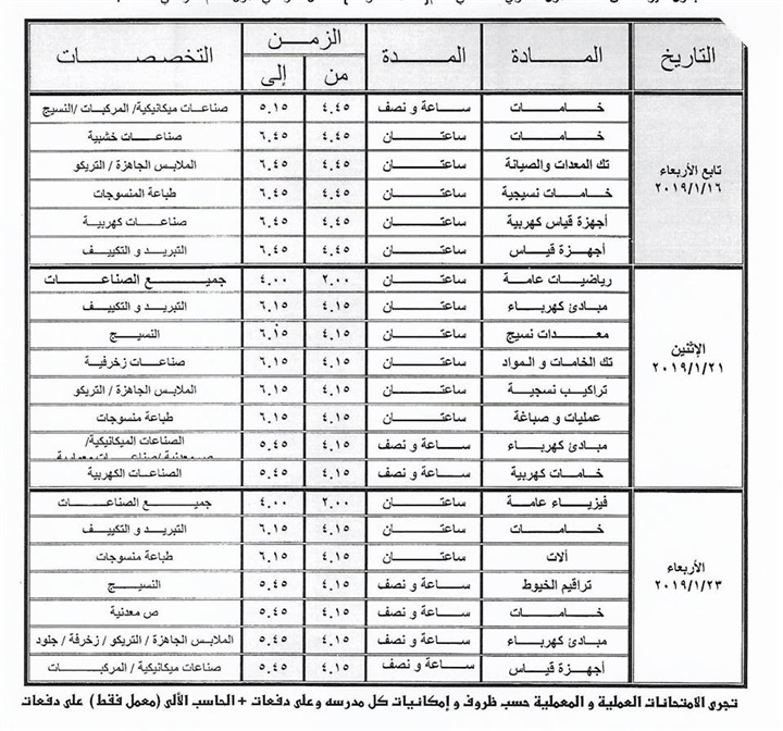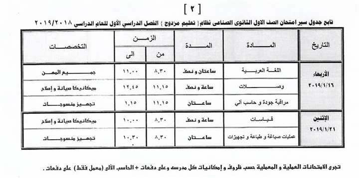 ننشر جداول امتحانات النقل للتعليم الصناعي بالجيزة