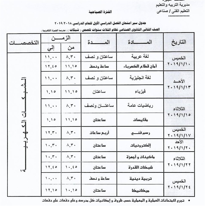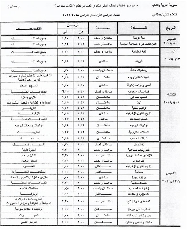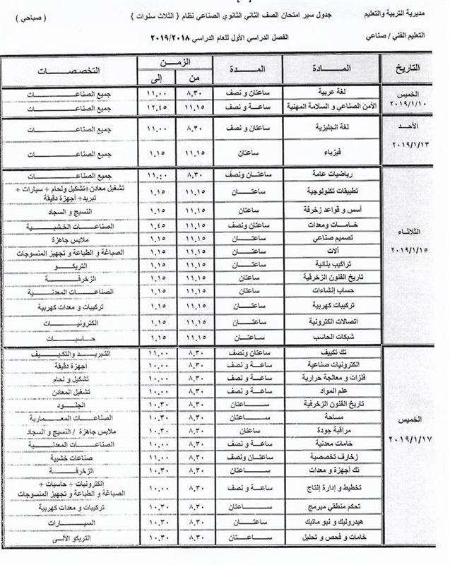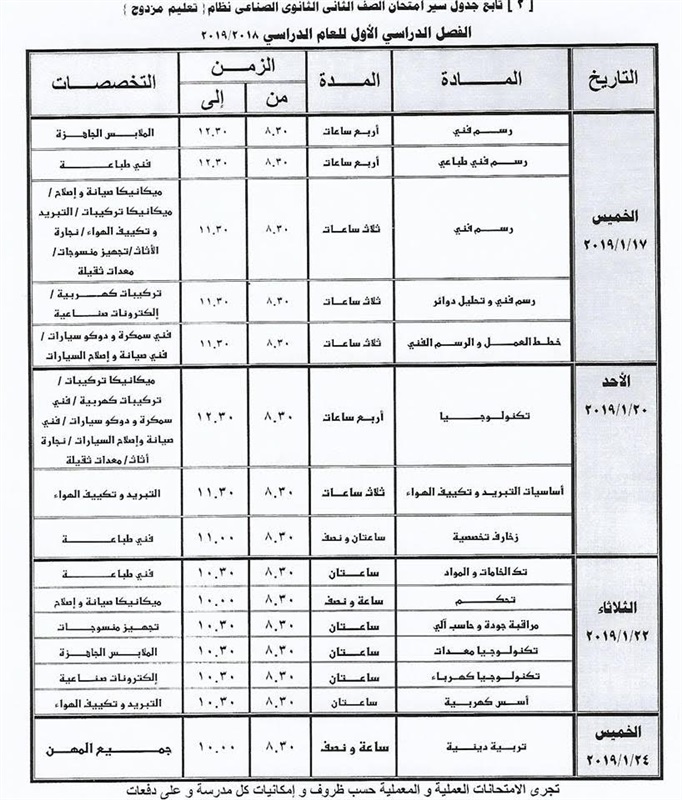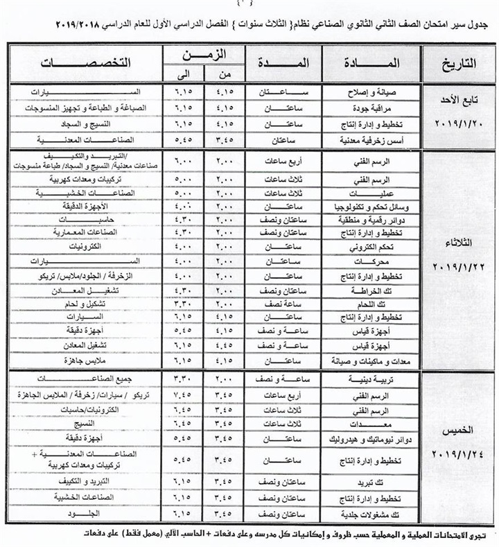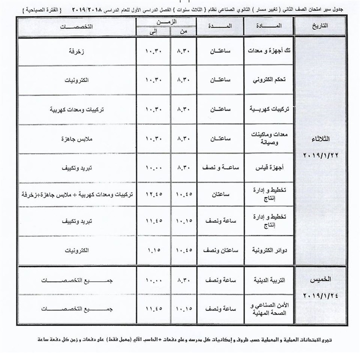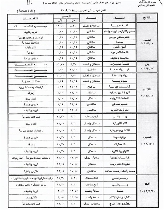 -الصف الثانى الثانوى الصناعى تغير مسار "صباحى"