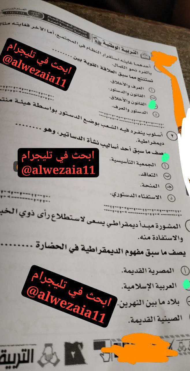 حل امتحان تالتة ثانوي تربية وطنية 2025