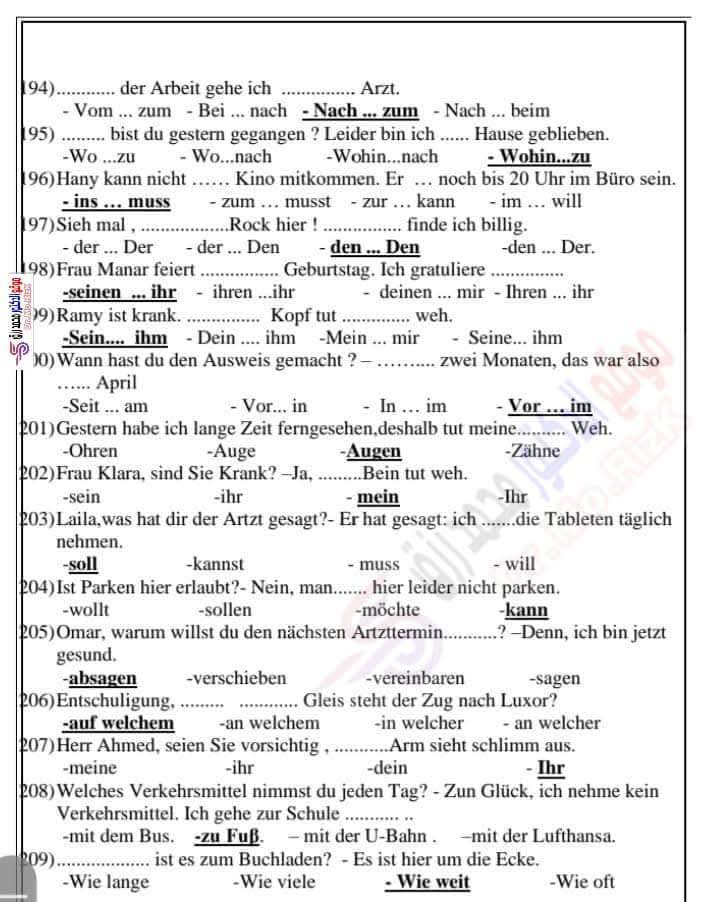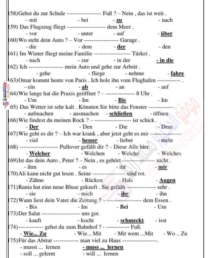 مراجعة اللغة الألمانية للصف الثالث الثانوي 2025