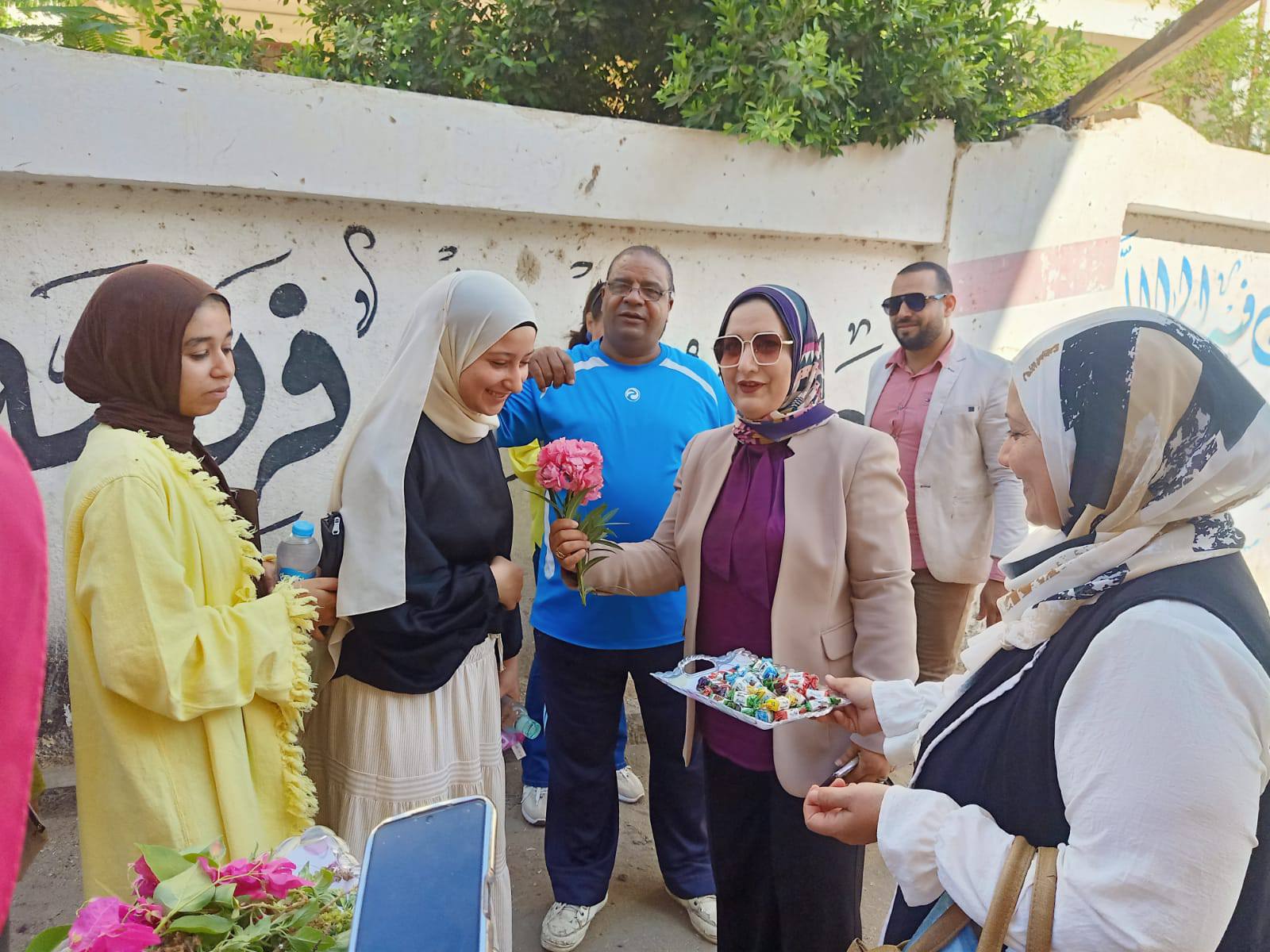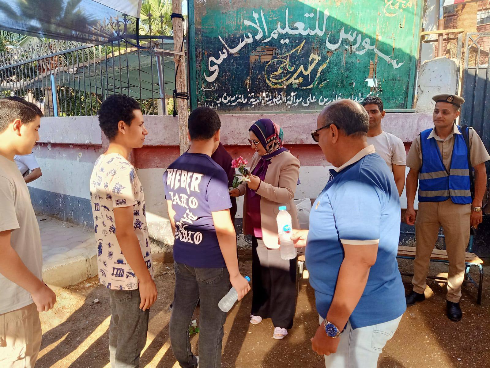 ورد وشيكولاتة.. "تعليم الفيوم" يرسم البسمة على وجوه الطلاب قبل امتحان العربي