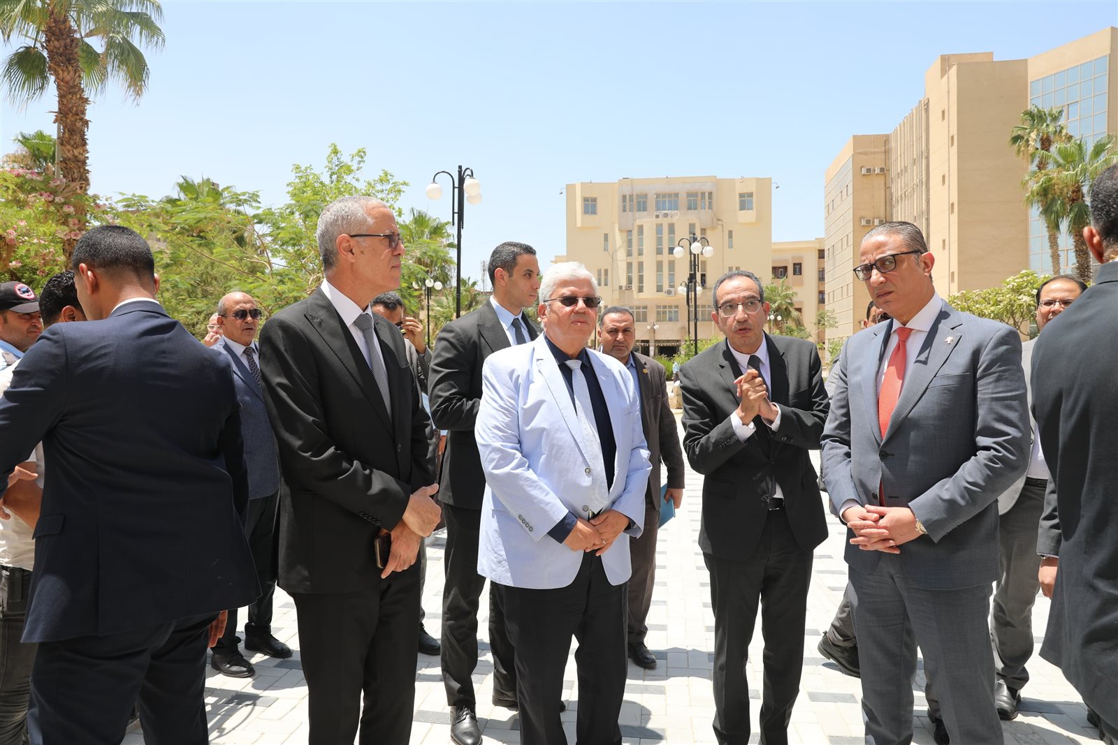 وزير التعليم العالي ومحافظ الفيوم ورئيس جامعة الفيوم يتفقدون مقر جامعة الفيوم الأهلية