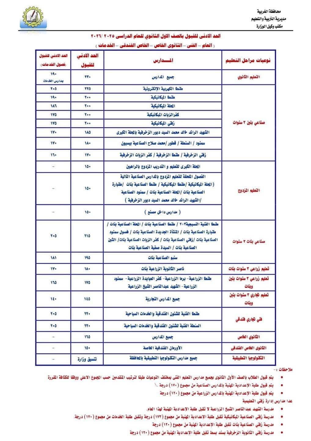 تنسيق الشهادة الإعدادية محافظة الغربية 2025