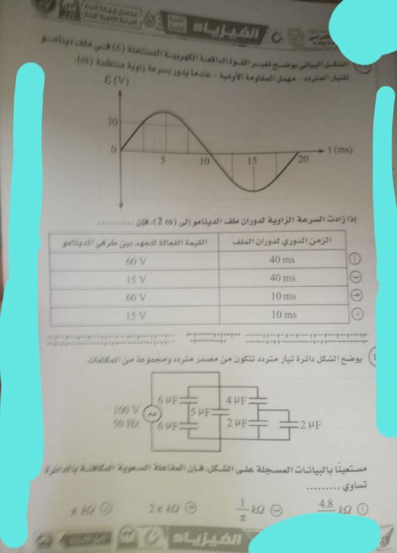 - تسريب امتحان الفيزياء تالته ثانوي 2025