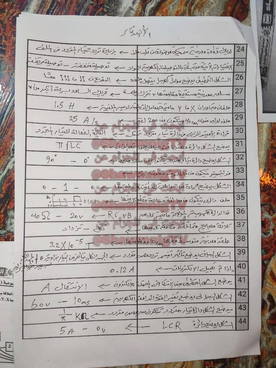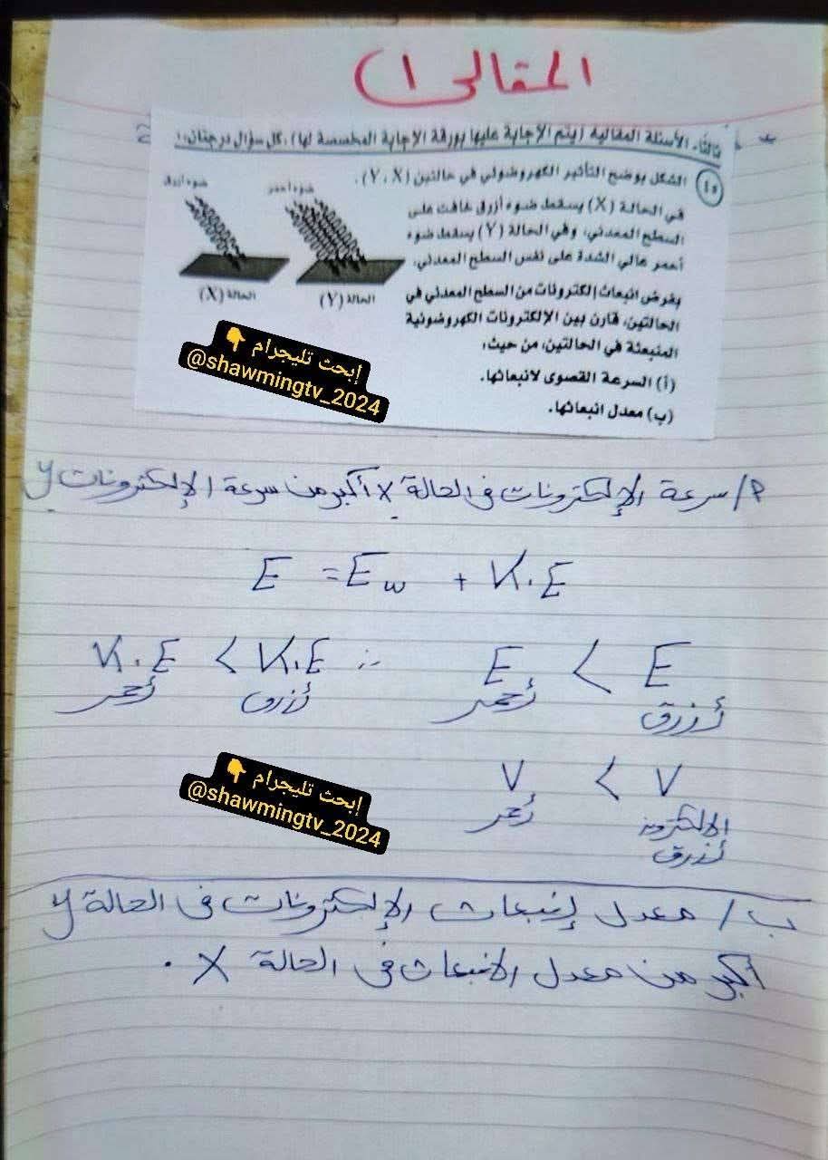 - تداول صور لأسئلة امتحان الفيزياء تحمل اسم الطالب ورقم الجلوس والمدرسة للطالب الذي نشر صور الامتحان على الانترنت عبر تطبيق واتساب.