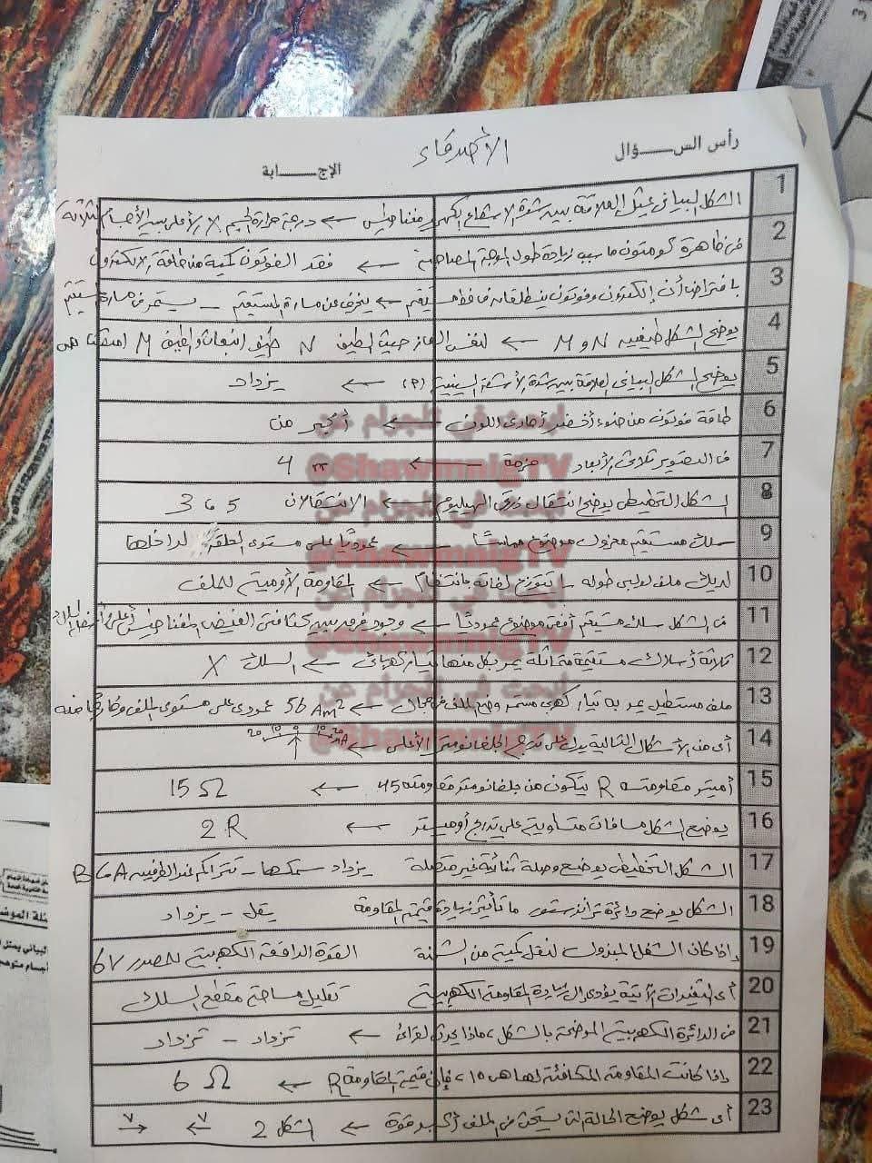 وكان رواد مواقع التواصل الاجتماعي قد تداولوا صورا لإجابات امتحان الفيزياء لطلاب الثانوية العامة 2025 الشعبة العلمية علوم ورياضيات والتي جاءت كالآتي: