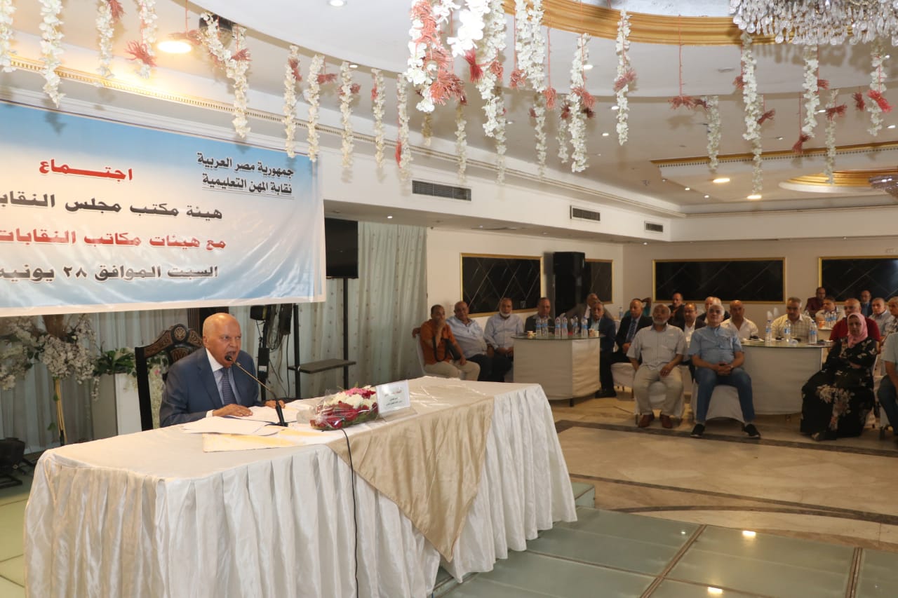 جاء ذلك خلال اجتماع هيئة مكتب النقابة العامة برئاسة خلف الزناتي نقيب المعلمين، مع هيئات مكاتب النقابات الفرعية على مستوى الجمهورية، الذى عقد اليوم بمقر النقابة العامة للمهن التعليمية بالقاهرة، بحضور أحمد الشربيني، ومحمد عبد الله، وكيلا النقابة العامة، وياسر عرفات الأمين العام للنقابة، وسيد على، الأمين المساعد، وجميع أعضاء هيئة مكتب النقابة العامة للمهن التعليمية.