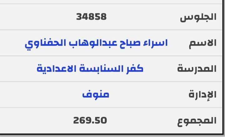 تداول رواد مواقع التواصل الاجتماعي، صورا لنتيجة الشهادة الإعدادية لإسراء صباح عبدالوهاب الحفناوي، إحدى ضحايا حادث الطريق الإقليمي بمحافظة المنوفية.