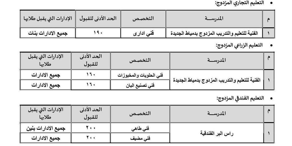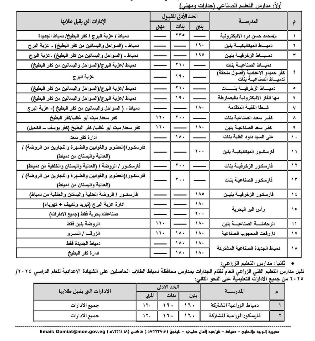 ننشر تنسيق القبول بمدارس التعليم الفني 2025 - 2026 في دمياط