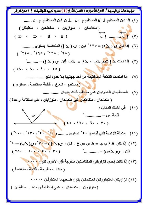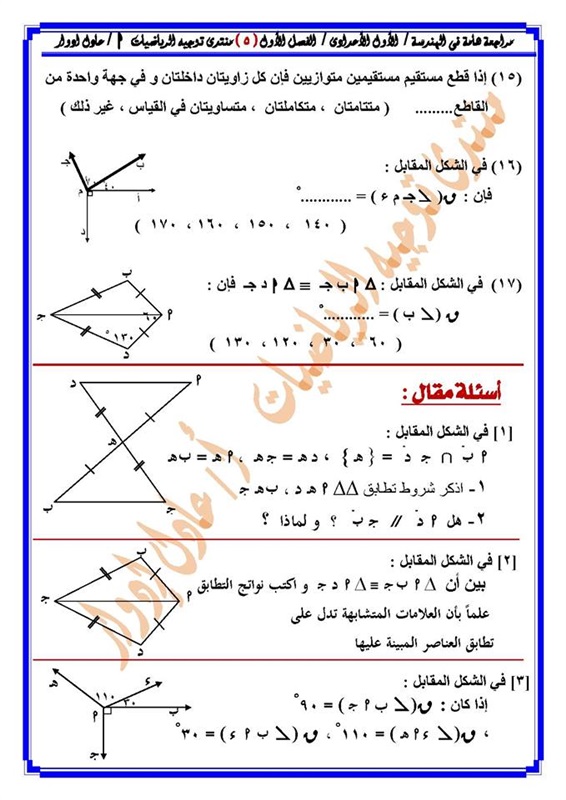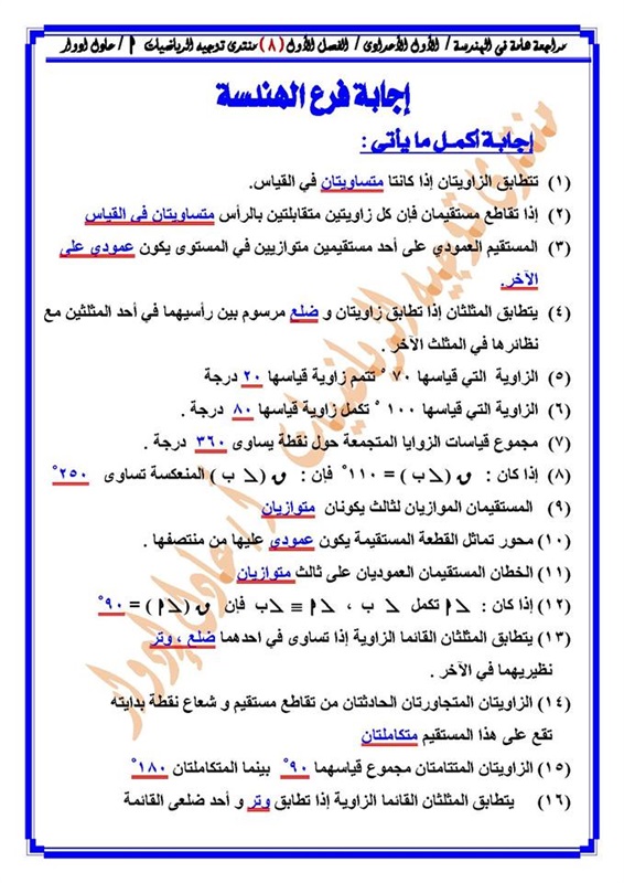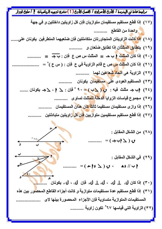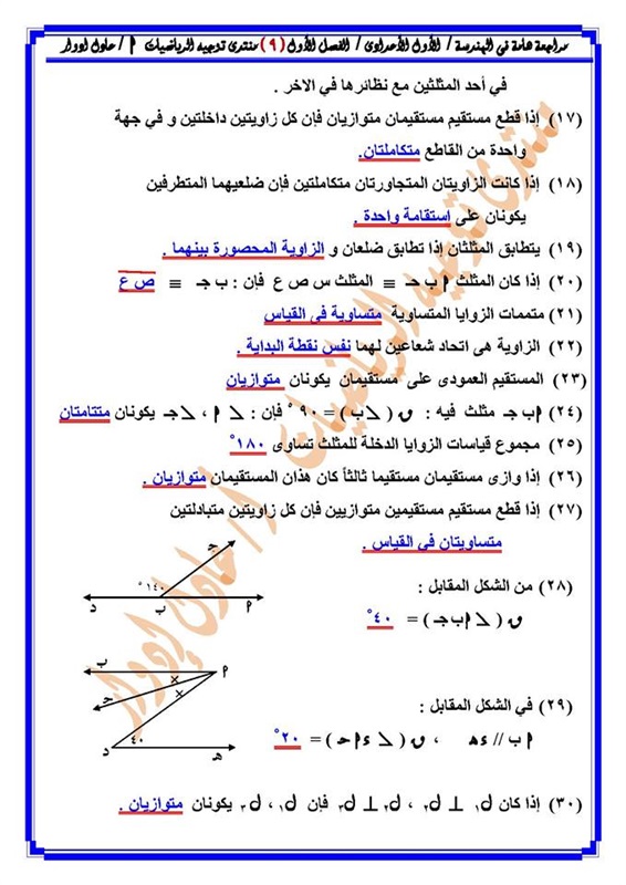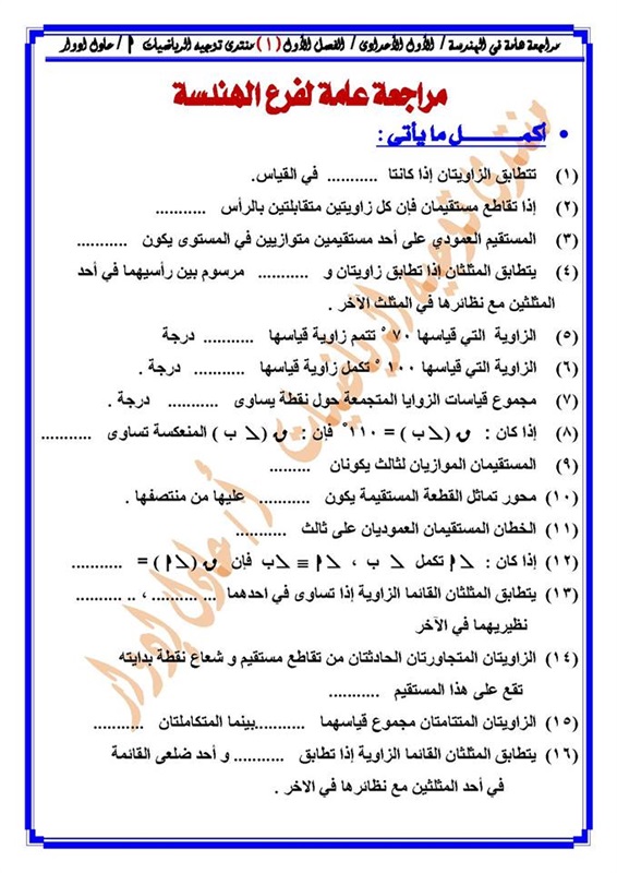 تحقيقات وحوارات ننشر المراجعات النهائية للأول الإعدادى في الهندسة شيماء محمد الأحد 23/ديسمبر/2018 - 06:22 م 12/23/2018 6:22:00 PM طباعة نشرت صفحة توجية الرياضيات عبر موقع التواصل الاجتماعى فيس بوك مراجعة للهندسة عبارة عن أسئلة وإجابات للصف الأول الإعدادى، الترم الأول. facebook twitter whats شارك