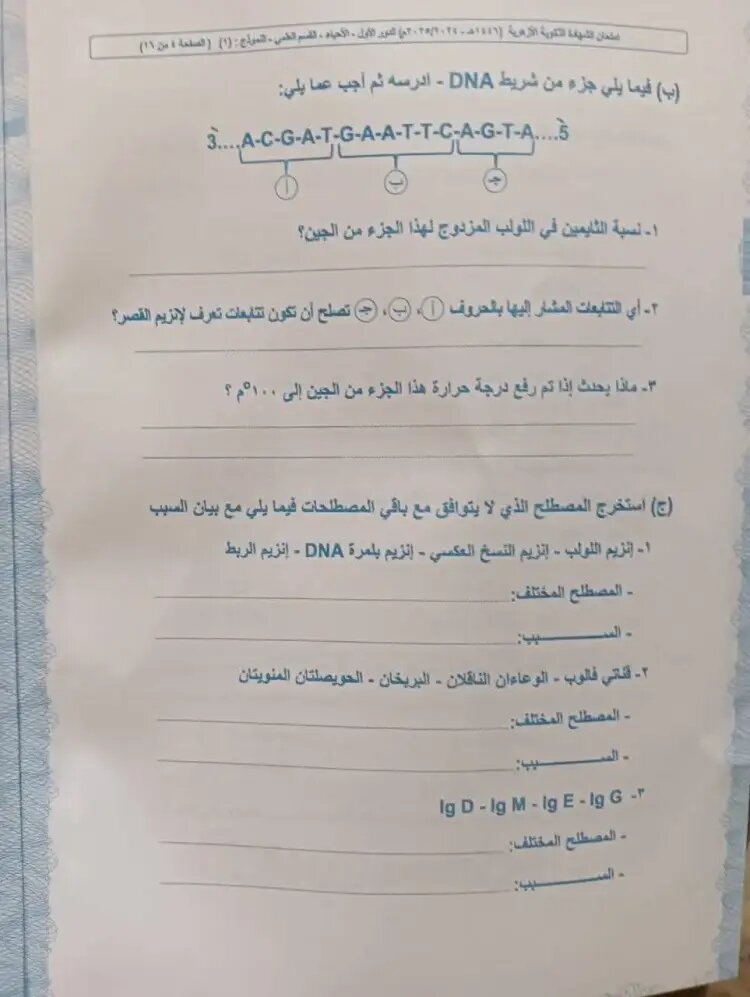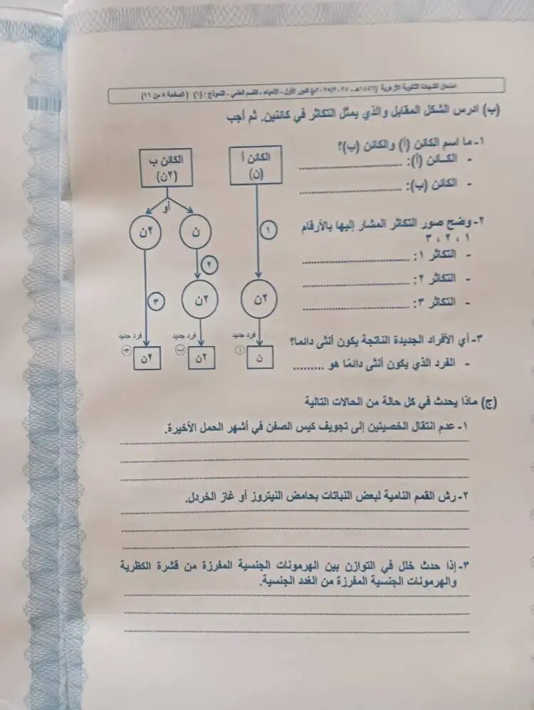 - امتحان الأحياء للثانوية الأزهرية 2025