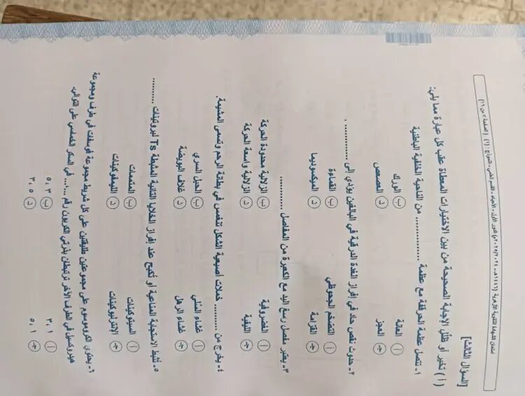 - امتحان الأحياء للصف الثالث الثانوي علمي علومي 2025