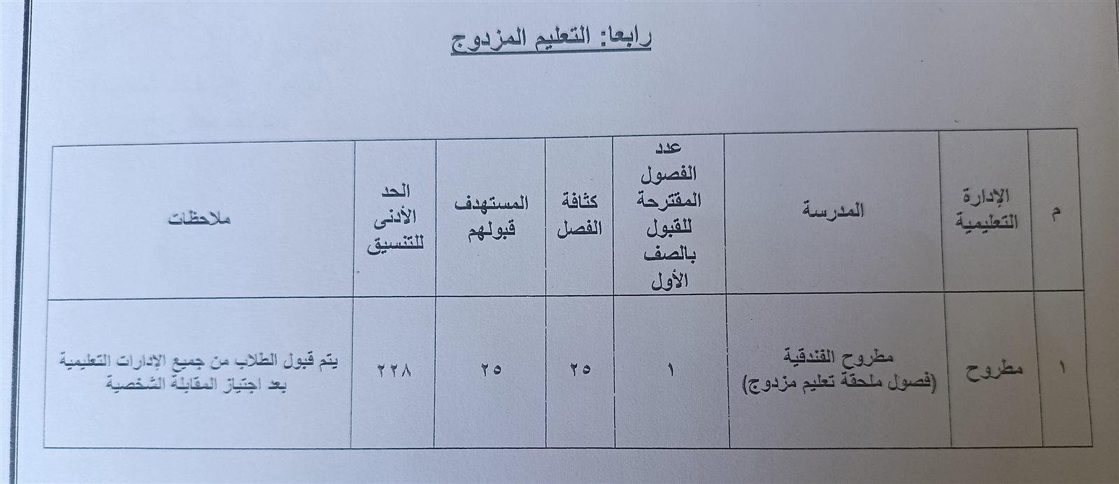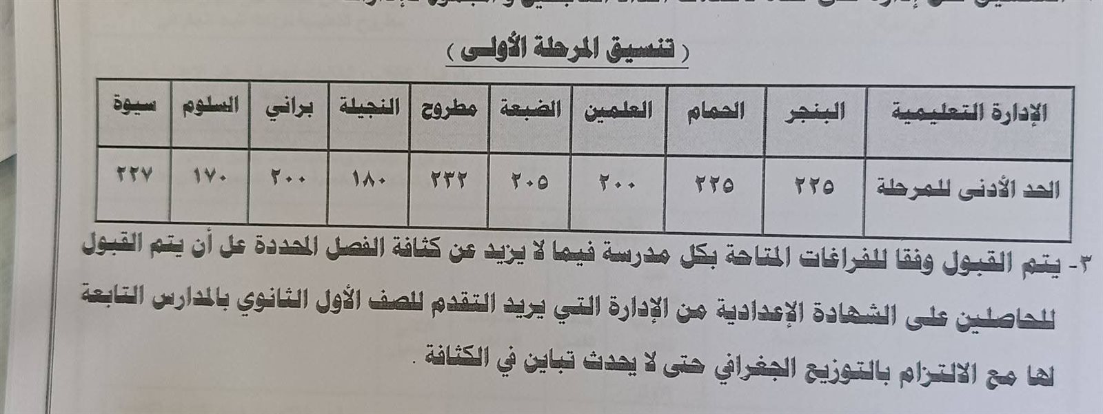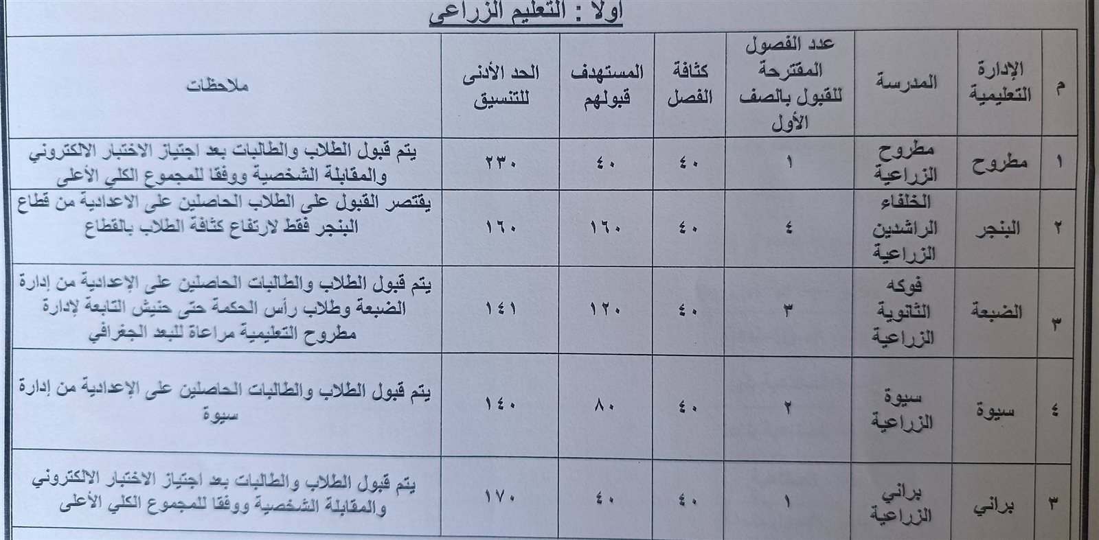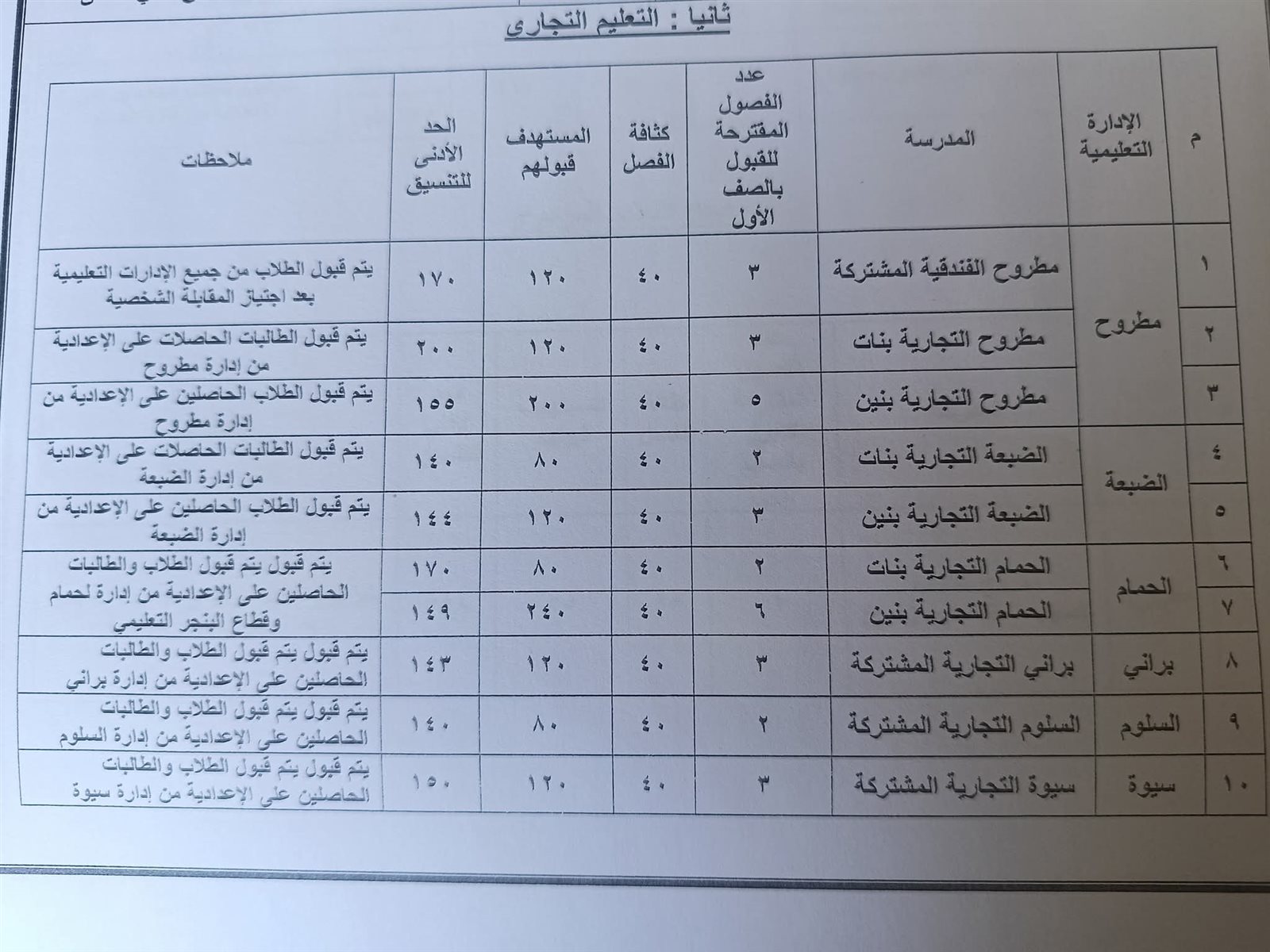 ننشر تنسيق القبول بمدارس الثانوى العام والفني 2026 بمطروح
