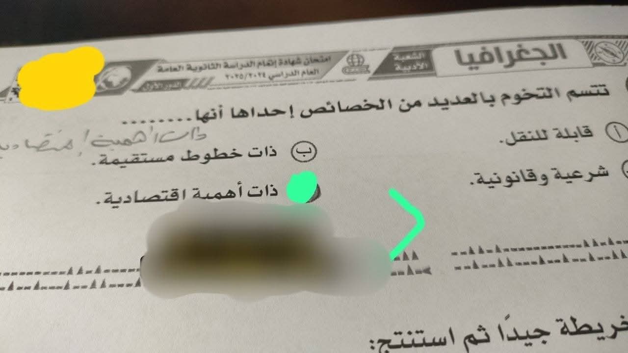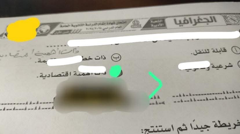 إجابات أسئلة امتحان الجغرافيا لـ الثانوية العامة 2025 «صور»