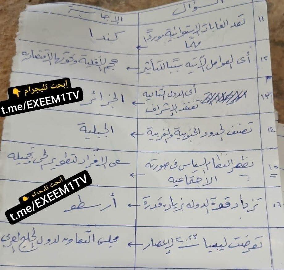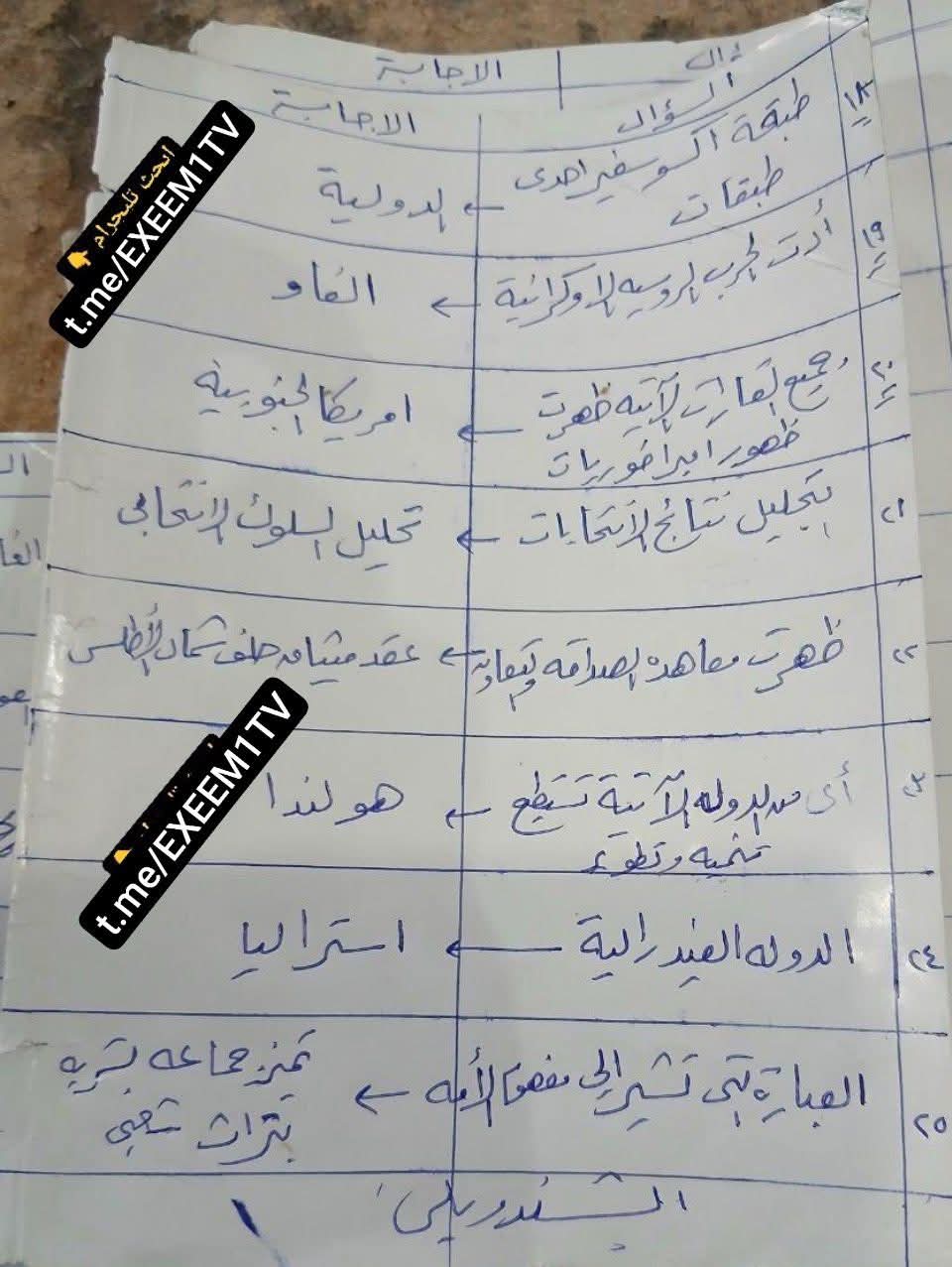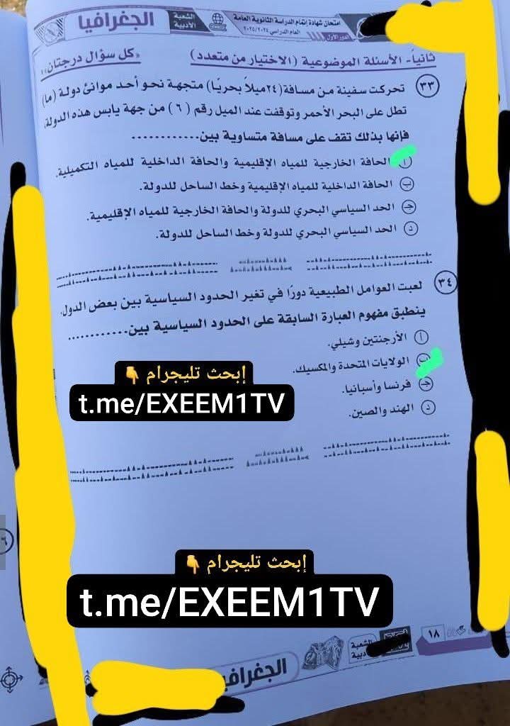ونشرت مجموعات الغش صور لأسئلة وإجابات امتحان الجغرافيا يمكن من خلالها معرفة إجابات أسئلة امتحان الجغرافيا لطلاب الثانوية العامة 2025 الشعبة الأدبية، من خلال مطالعة الصور التالية: