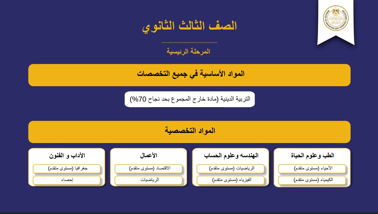 هل تختلف المواد الدراسية في هذا النظام عن الثانوية العامة؟