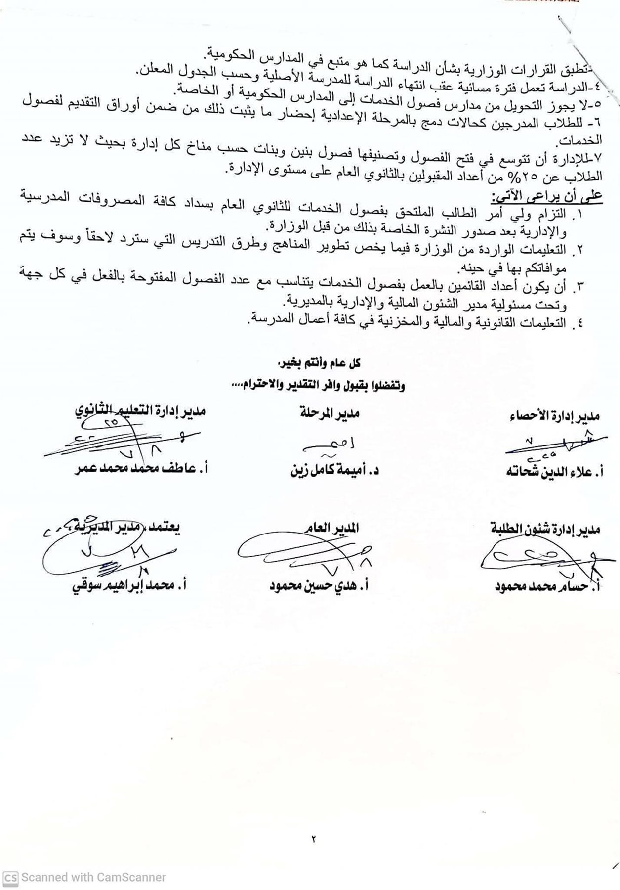 - التعليمات الواردة من الوزارة فيما يخص تطوير المناهج وطرق التدريس التي سترد لاحقًا وسوف يتم موافاتكم بها في حينه.