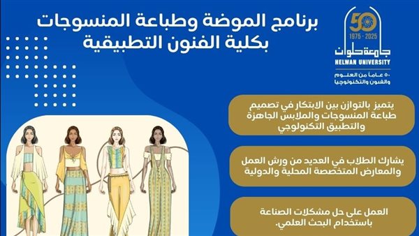 تنسيق الجامعات 2025.. برنامج الموضة وطباعة المنسوجات بكلية الفنون التطبيقية جامعة حلوان