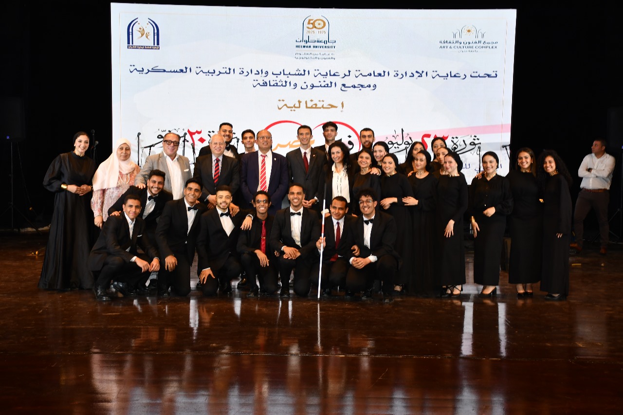نظّمت جامعة حلوان احتفالية كبرى بذكرى ثورتي ٣٠ يونيو و٢٣ يوليو، وذلك تحت رعاية وحضور الدكتور السيد قنديل رئيس جامعة حلوان، واللواء أركان حرب سمير عبد الغني، بالتعاون بين الإدارة العامة لرعاية الطلاب، إدارة التربية العسكرية، ومجمع الفنون والثقافة بالجامعة، في أجواء مفعمة بالحماس والانتماء الوطني.