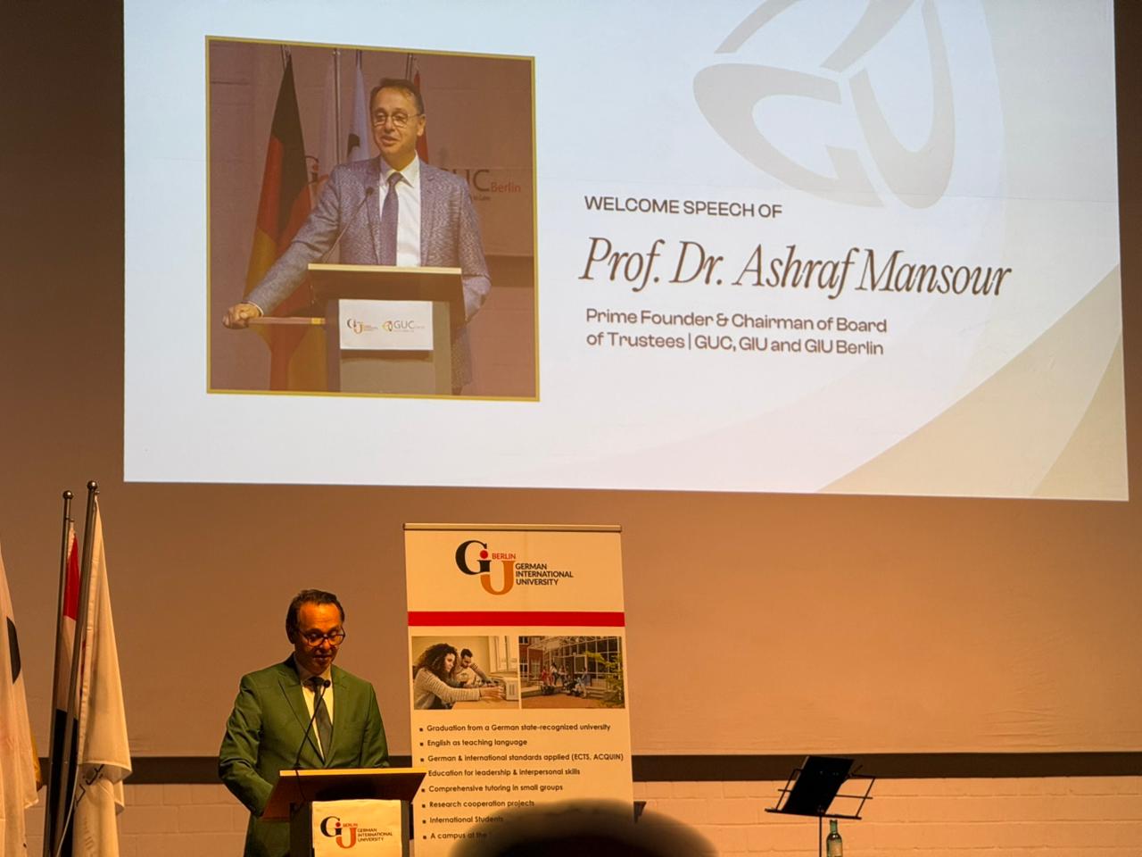 وعبر رئيس مجلس أمناء الجامعة الألمانية بالقاهرة والألمانية الدولية بالعاصمة الإدارية الجديدة وفرع الجامعة الألمانية ببرلين، عن عميق فخره بالانتماء إلى حضارة عريقة، قائلًا:أبدأ كلماتي اليوم من مكان ملئ بالفخر والشرف، ليس فقط لأنني آتي من بلد تعد مهد جميع العلوم، ولكن لأنني آتي من دولة منحت العالم أول معاهدة سلام، في الوقت الذي يبحث فيه العالم كله عن السلام في وقتنا الحاضر.