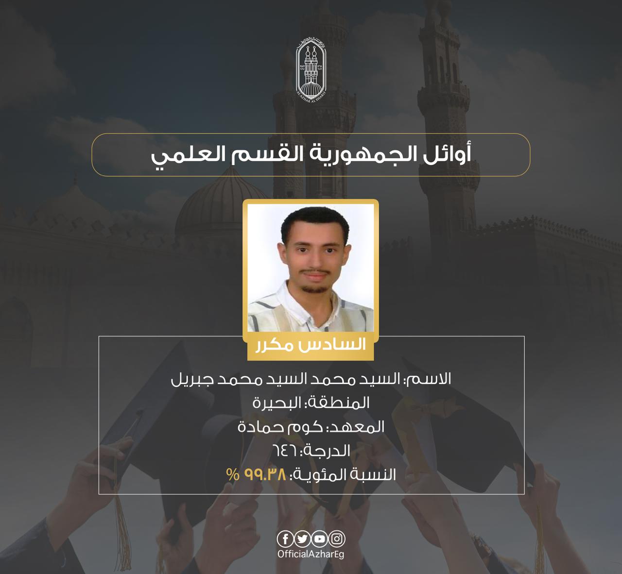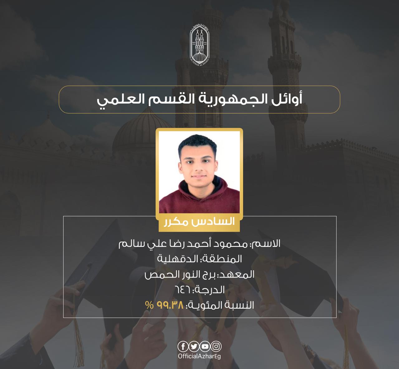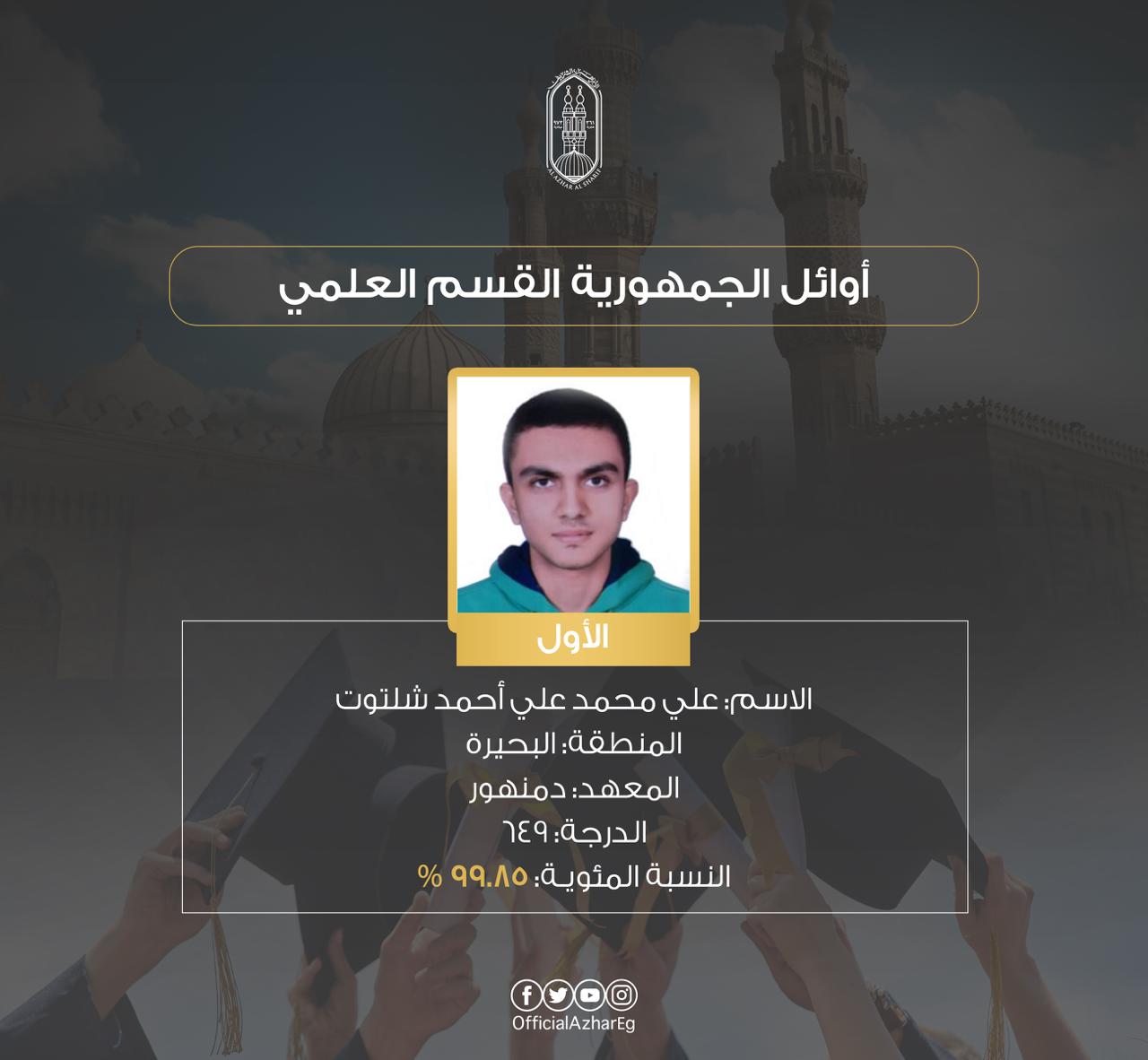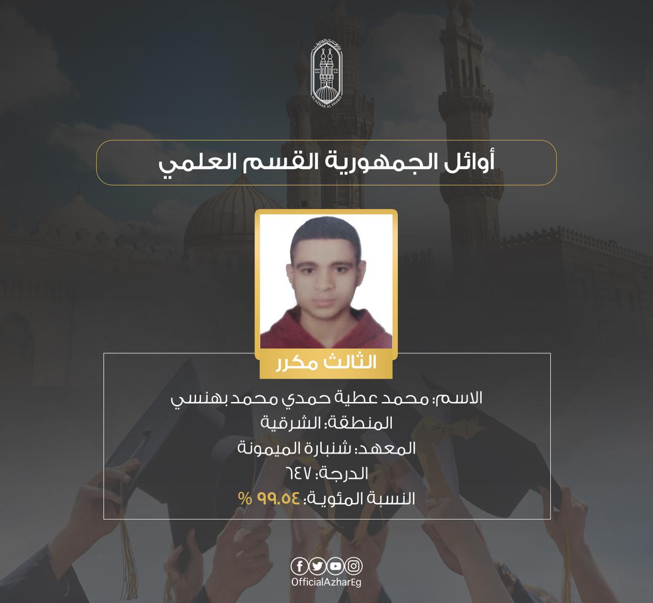أما أسماء أوائل الثانوية الأزهرية القسم العلمي فجاء كالآتي: