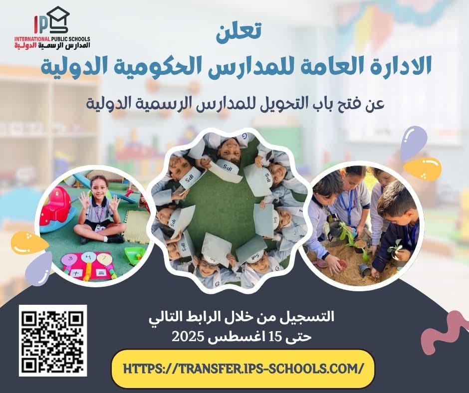 أعلنت الإدارة العامة للمدارس الحكومية الدولية، عن فتح باب التحويل للمدارس الرسمية الدولية، حتى يوم 15 أغسطس المقبل عبر الرابط التالي: