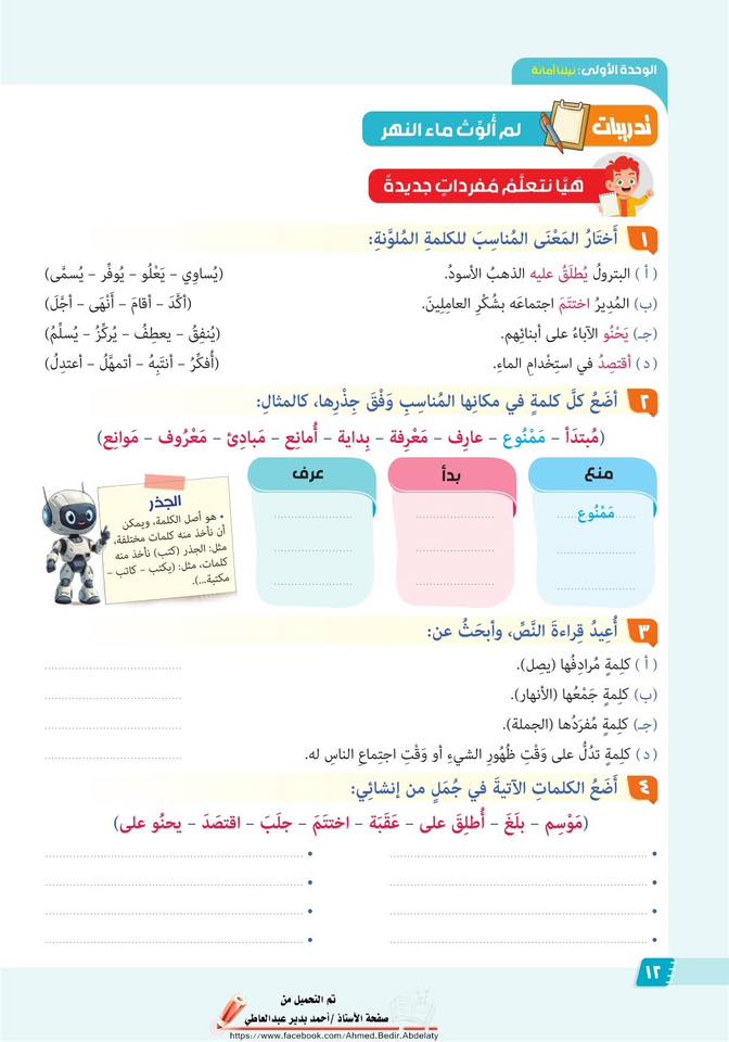 كما حرص المؤلفون على جعل هذا الكتاب كتابا متكاملًا وافي الشرح والتدريبات يستطيع المتعلم الاعتماد عليه تماما في الاستذكار حيث تم تضمين الكلمات الجديدة بألوان مميزة لتيسر على المتعلم ملاحظتها وفهمها. وتيسيرًا على المتعلم، تم تقسيم الدروس إلى أقسام واضحة، مثل: القراءة والقواعد النحوية والنصوص الشعرية، والقواعد الإملائية، والخط العربي، ومراعاة معالجة الأخطاء الإملائية الشائعة حتى يتفاداها الأطفال. كما تم تضمين نصوص الاستماع في آخر الكتاب للرجوع إليها عند الحاجة.