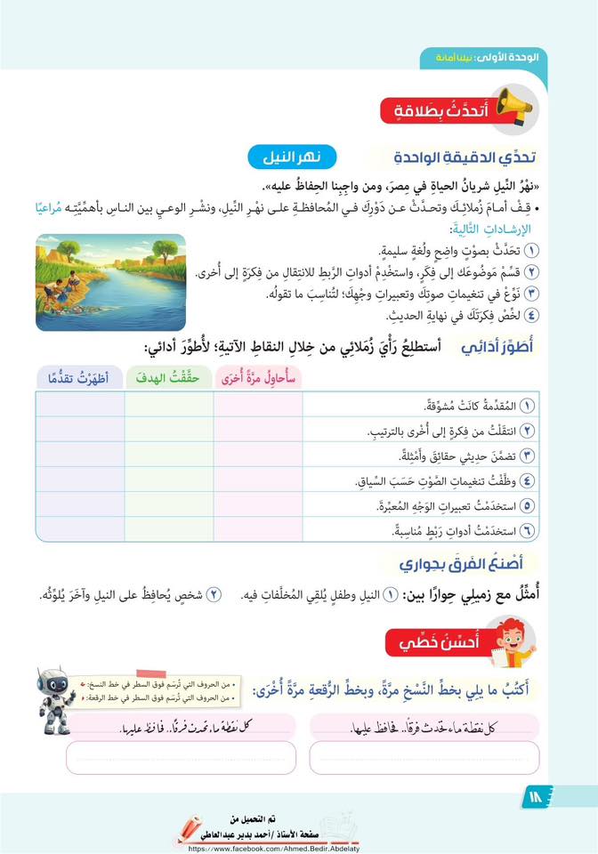 وفيما يخص مهارات اللغة، ولتنشئة جيل من أطفال مصر قادرين على التعبير عن أنفسهم باستخدام لغتهم بإتقان. معتزين بها وبتاريخها، قادرين على الاختلاف والاتفاق باحترام وضعنا العديد من التدريبات لتنمية مهارات اللغة الأربع: الاستماع والتحدث والقراءة والكتابة، بالإضافة إلى مهارات العرض وإبداء الرأي في حديثه مع الآخرين بشكل موضوعي ومهذب. ولتطبيق هذا تم تضمين بطاقة الشكر والتقييم التي صممت بشكل علمي لعرض الرأي من خلال ثلاث مراحل: تبدأ بشكر الزميل على العرض، ثم ذكر الإيجابيات، والانتقال إلى تحديد النقاط المقترح تطويرها، كما تم الحرص على تنوع الأنشطة من خلال الأنشطة الفردية، والثنائية، ثم العمل في مجموعات مع تحديد الأدوار في العرض والنقاش.