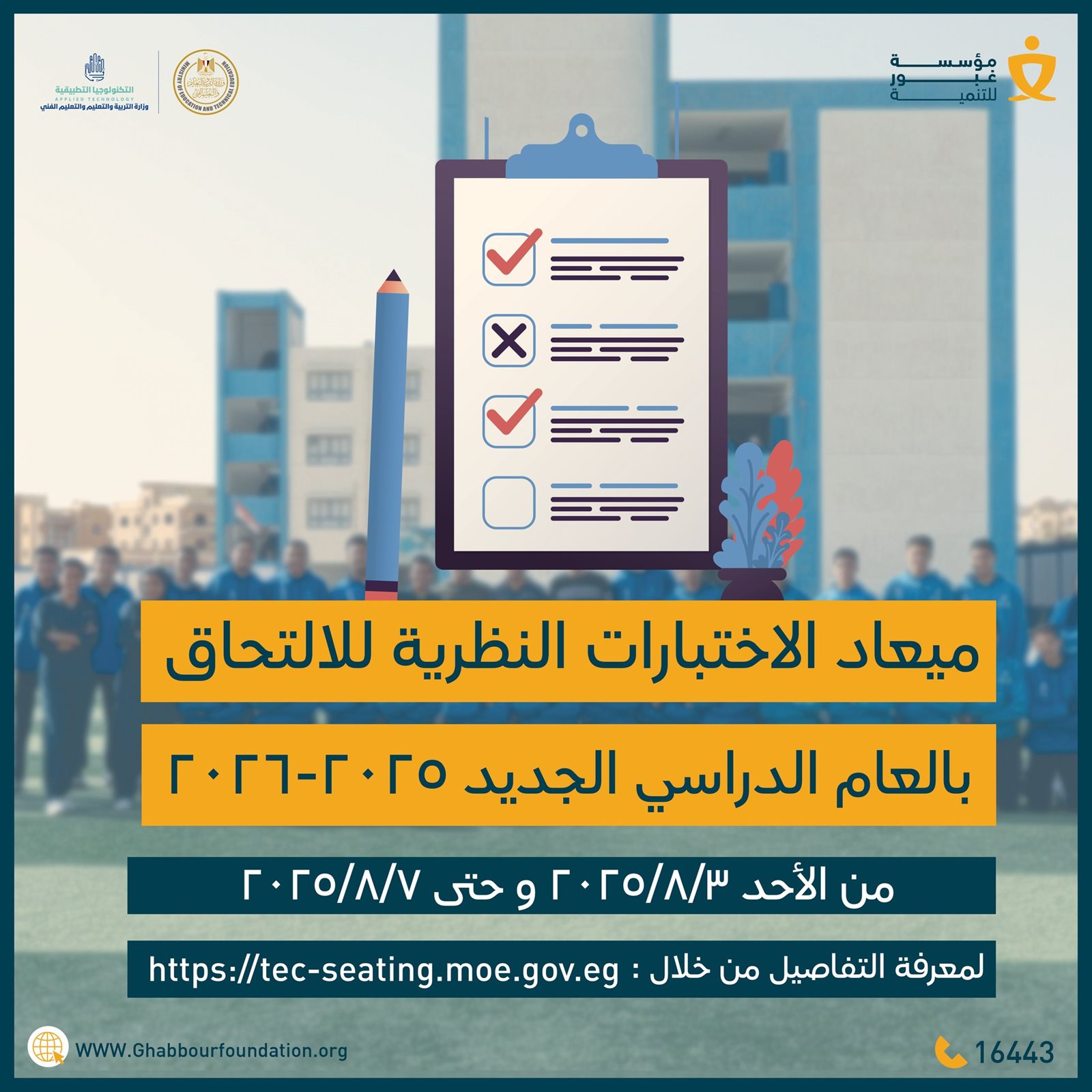 رابط الاستعلام عن موعد ومكان الاختبارات النظرية لمدارس غبور للتكنولوجيا التطبيقية