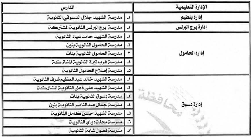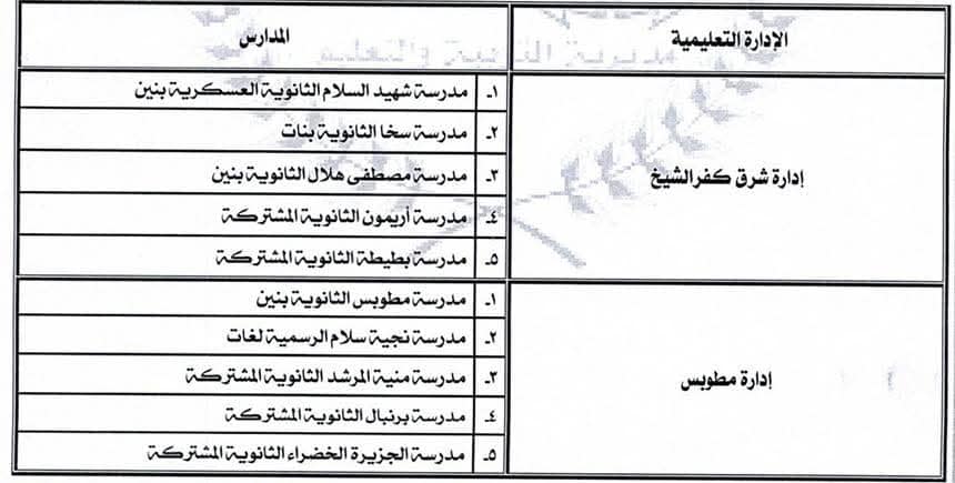 أشار محافظ كفرالشيخ إلى أن النزول بدرجات التنسيق يختص بالمدارس الواردة في الجداول المعتمدة فقط (المرفقة)، ويُشترط عدم التحويل من هذه المدارس إلى مدارس أخرى طوال سنوات المرحلة الثانوية، ضمانًا للانضباط وتحقيق الاستفادة القصوى من الطاقة الاستيعابية المتاحة.